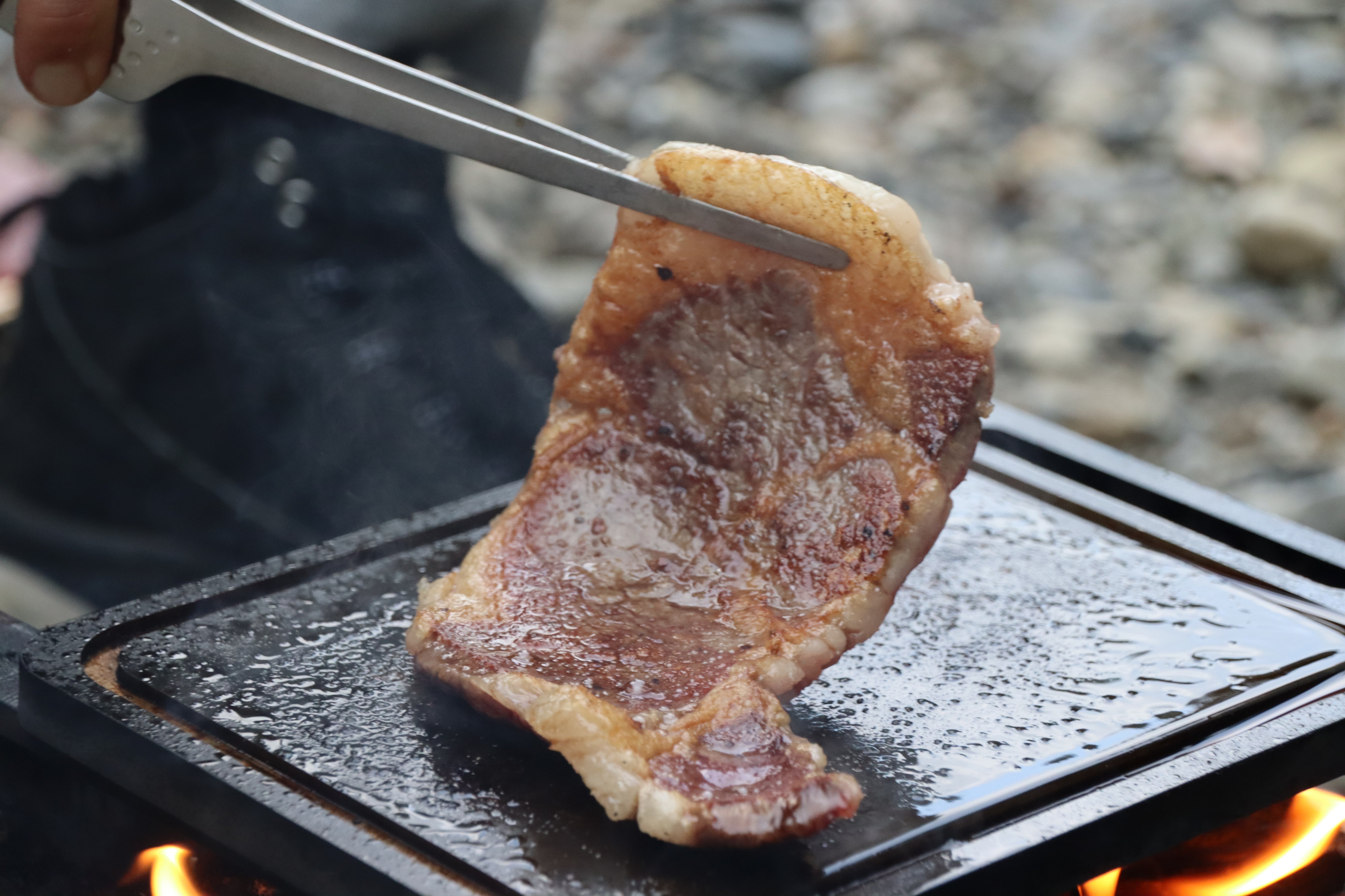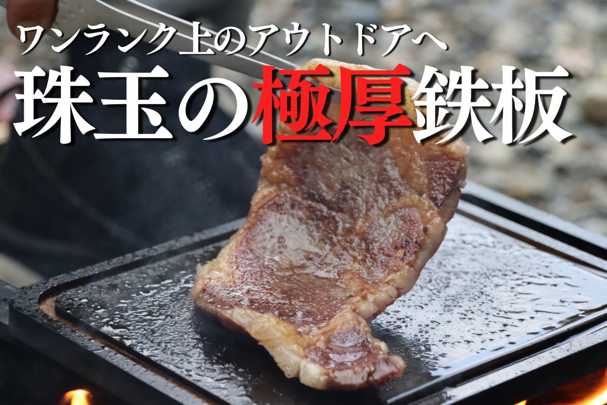 板厚についても試作を重ね、6mm〜16mmまでを検証。肉の旨味がどこで変わるのかということと、板厚を上げれば重量が上がる関係からアウトドアシーンでの利便性を考え抜き、12mmの超極厚鉄板の提供を決定しました。