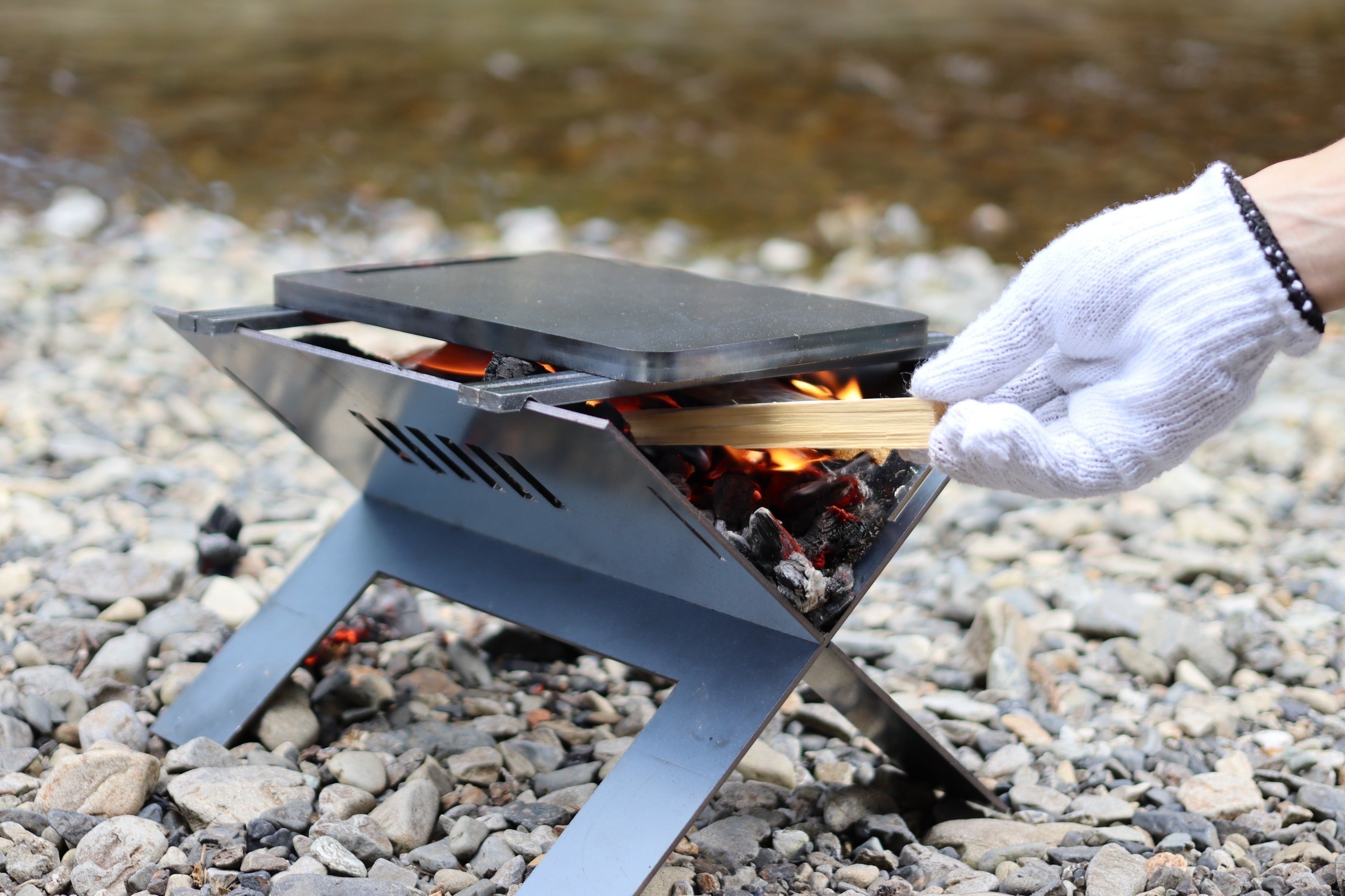 ”極厚にしたほうが旨い。ただ、極厚にすると重くなる”。重くなりすぎるとアウトドアシーンでの利便性が下がる。このジレンマの中で、重量と旨味のバランスをいくつもの製品試作の中で検討し、12mm鉄板という答えに行き着きました。