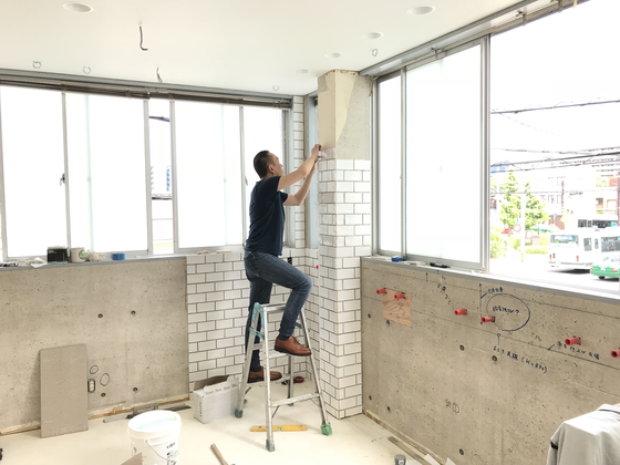 【アトリエ改装報告 その4】 壁ができたので、タイルを張っていきます!https://camp-fire.jp/projects/view/68096 プロジェクト終了まで残り30日です。