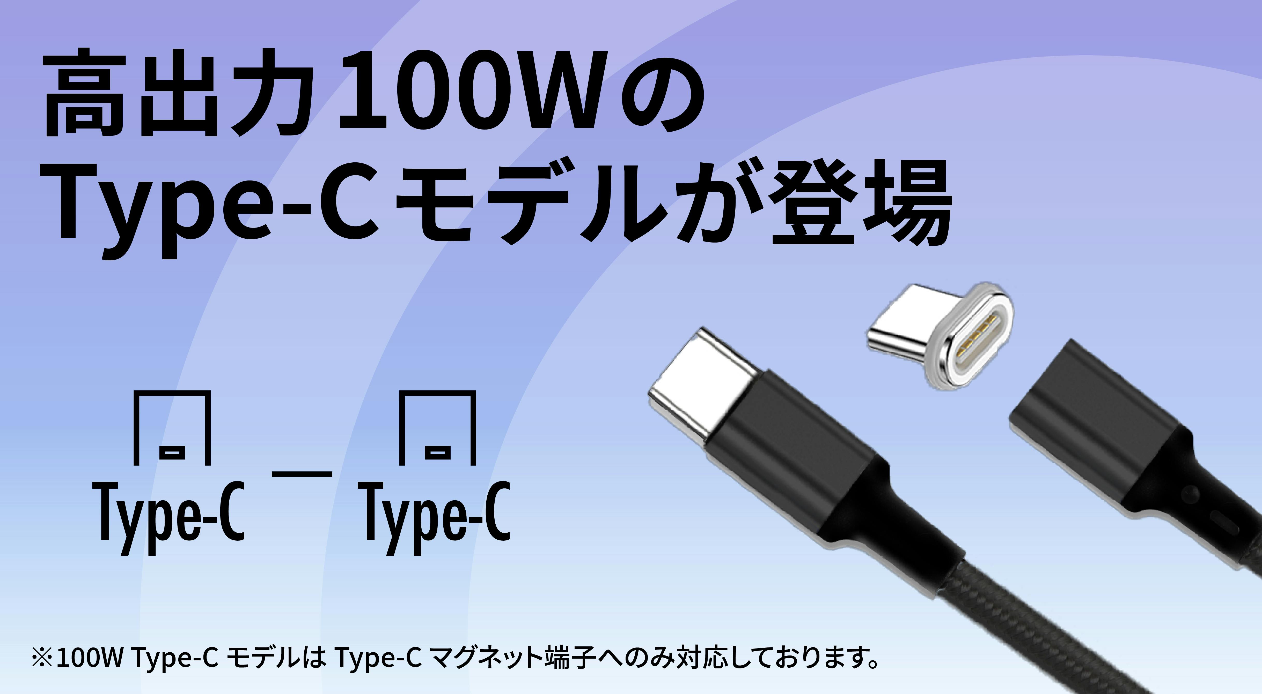 ※100W Type-CモデルはType-Cマグネット端子へのみ対応しております。