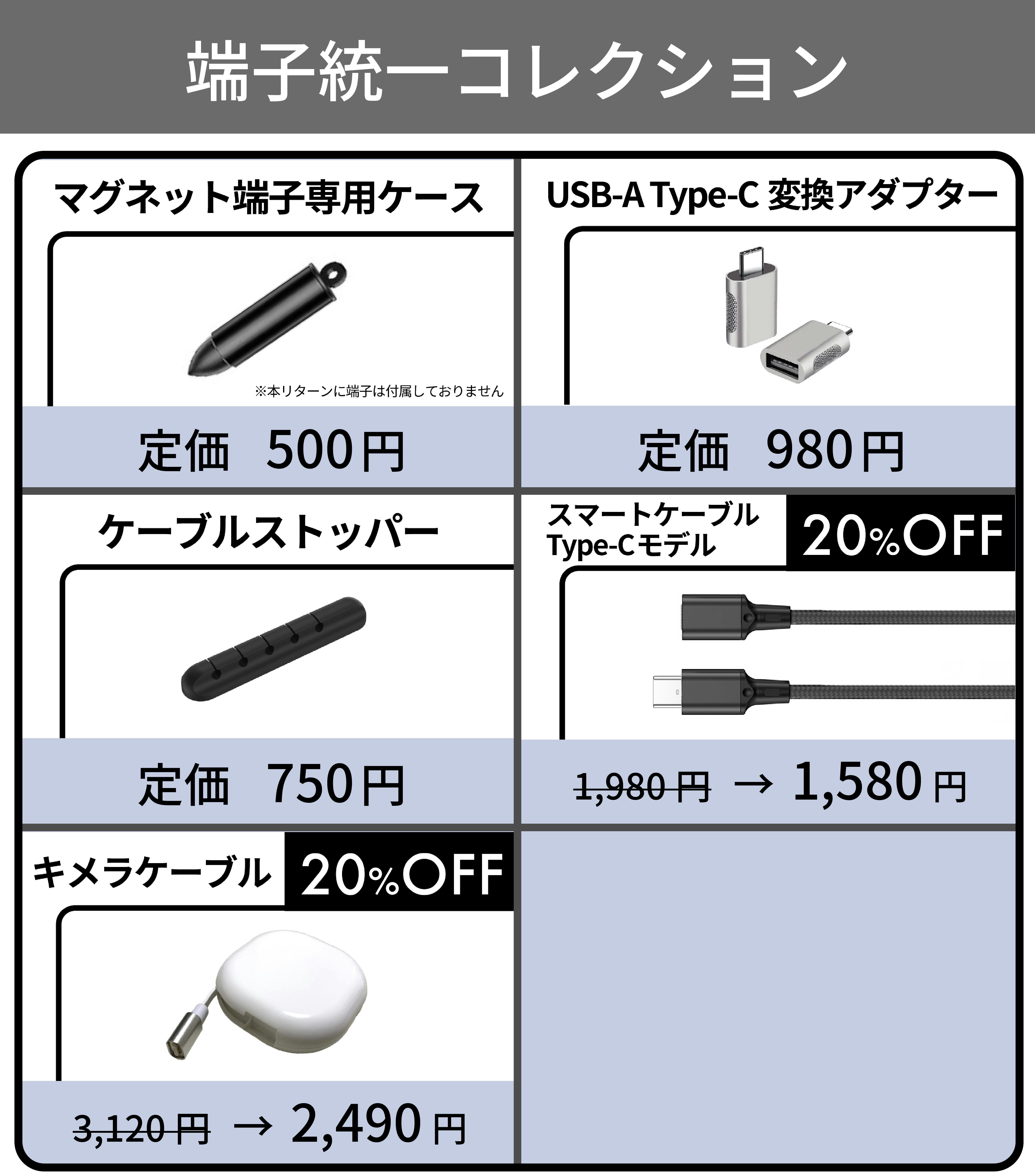 今後も、適正価格にてお客様へ更なる利便性を提供するために弊社独自規格での製品及び、革新的な商品の開発に努め、独創性のあるガジェットブランドとして努めてまいりますので、見守ってくださいますと幸いです。