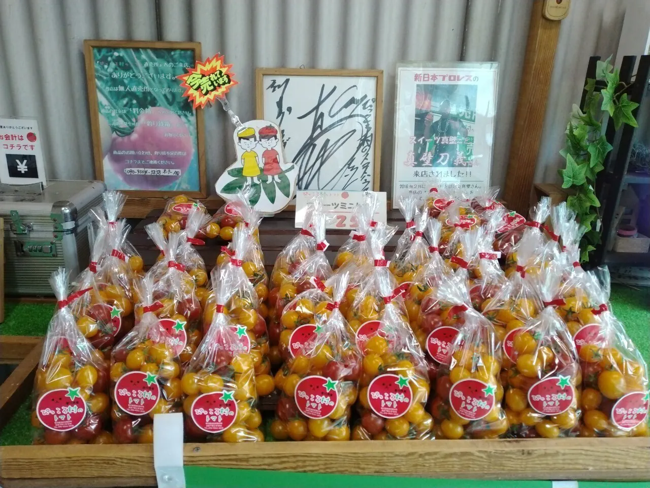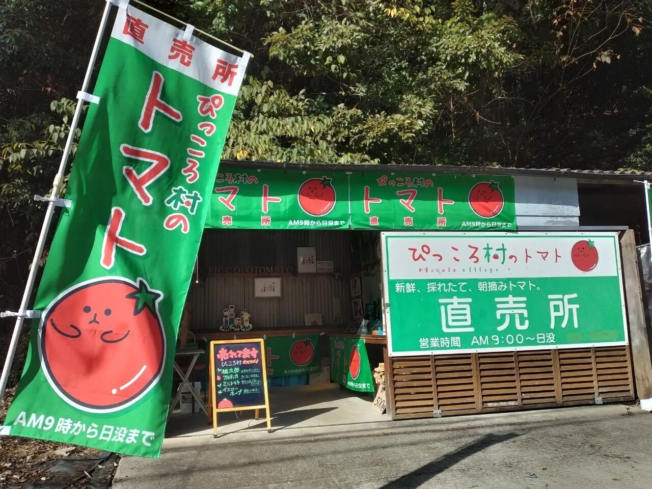 ぴっころ村には、朝に収穫した新鮮な朝摘みトマトが並ぶ、無人の直売所があります。