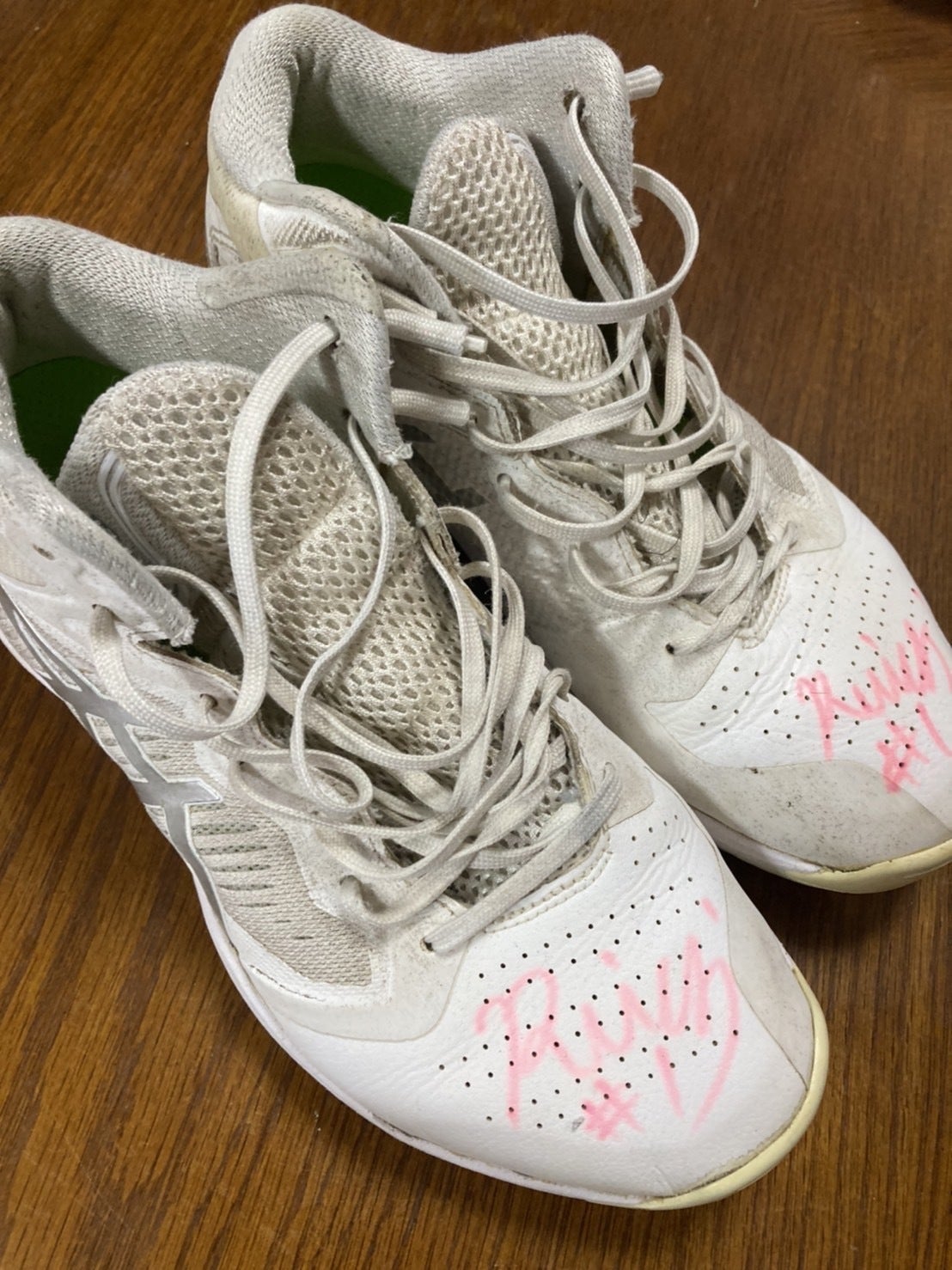 今でも、そのバッシュ は直筆のサインを書いて置いてあります。ボロボロですが。笑