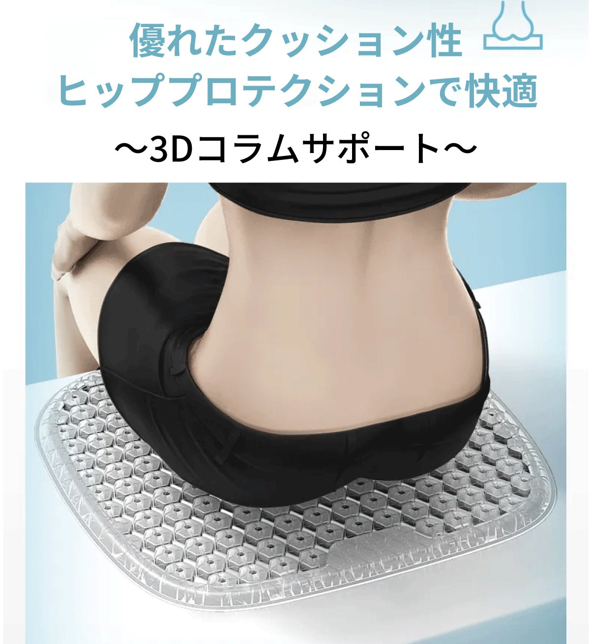 3Dコラムサポートにより、ヒップが優れたクッション性で守られます。
