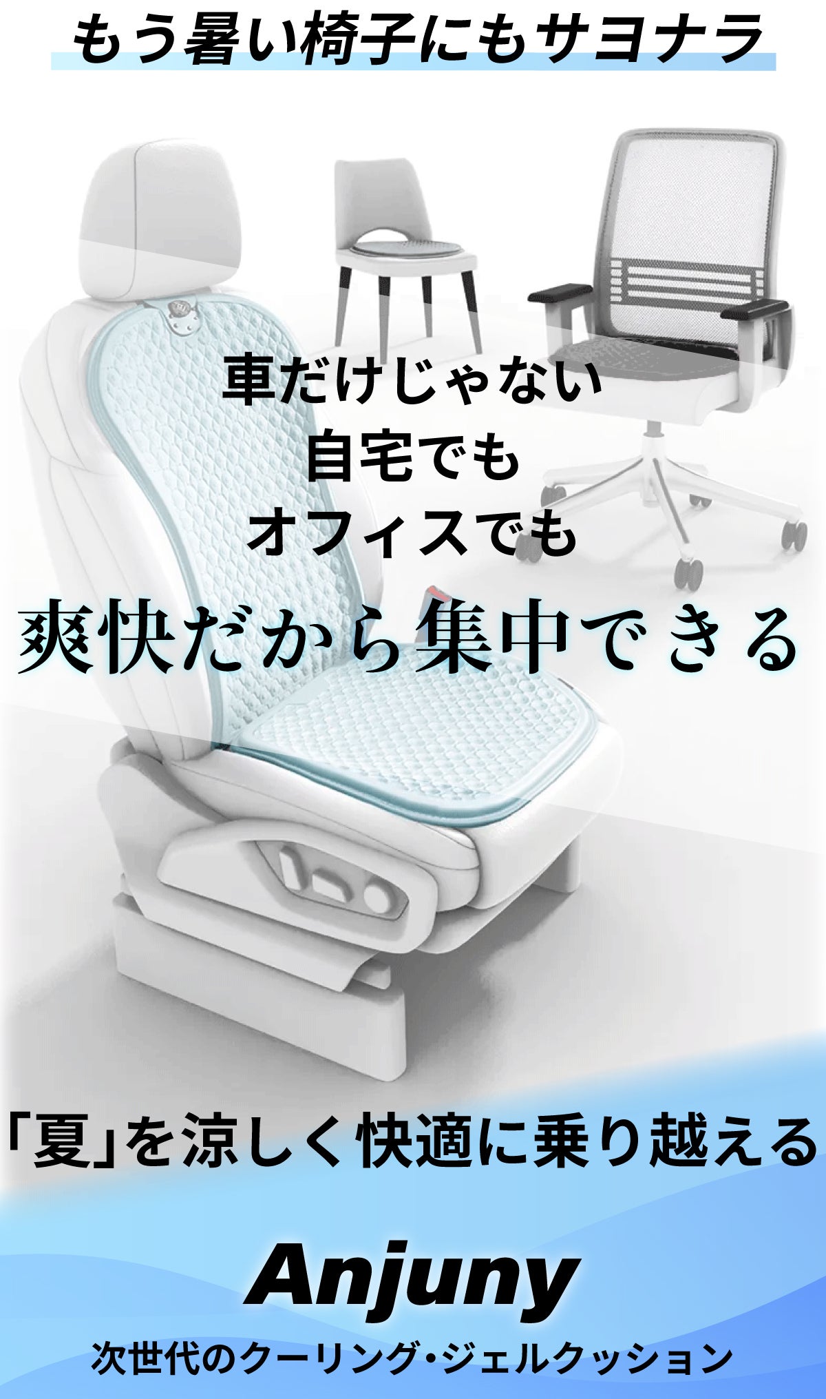 この度ご縁がありまして「Anjuny」と日本国内での独占販売契約を締結しクーリングジェルシートクッションを一般販売に先駆けてCAMPFIREにてプロジェクトを実行する運びとなりました。
