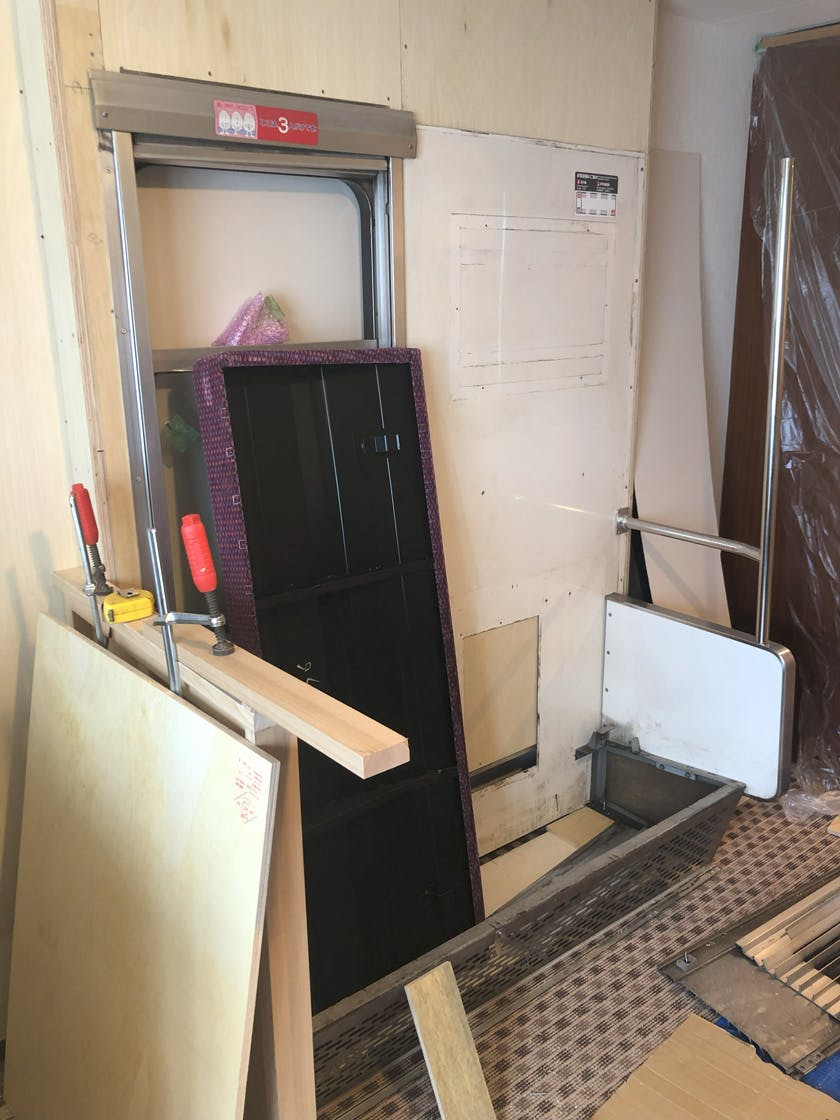 手前側は車掌台のスペースですが、壁を作ると圧迫感がすごいので、ここは見た目を優先しています。