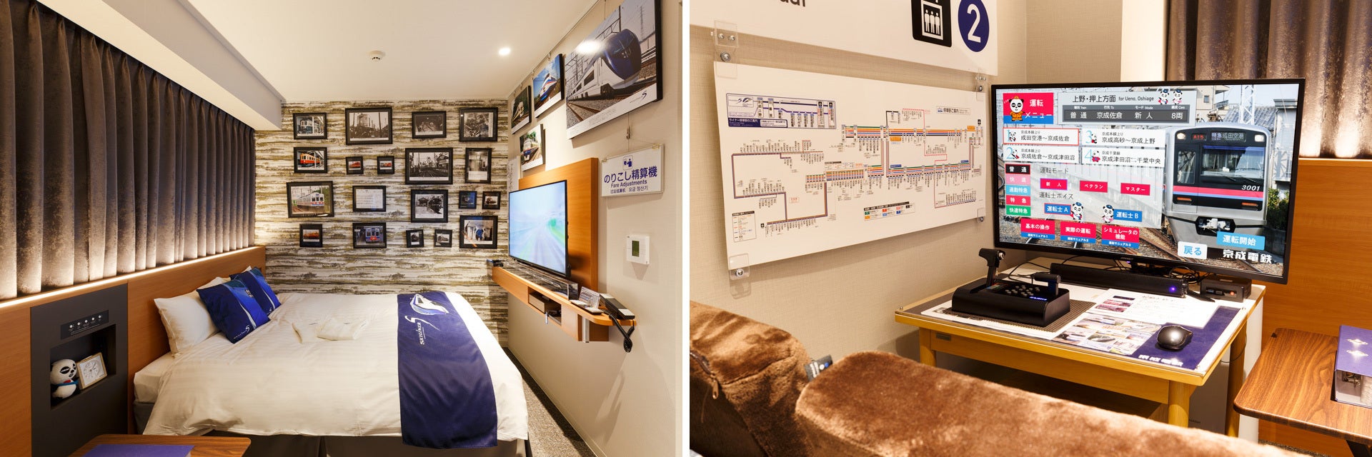 そして、ご宿泊いただいた多くのお客様からの「シミュレーターが欲しい!」という熱いご要望にお応えすべく、京成電鉄にて新たに運転体験シミュレーターを開発、一部展示品もリニューアルしたトレインルームに設置し、更に“鉄分”アップした新たな宿泊プランとして本年2023年4月から販売し、こちらも多くのお客様から大変好評をいただいております。