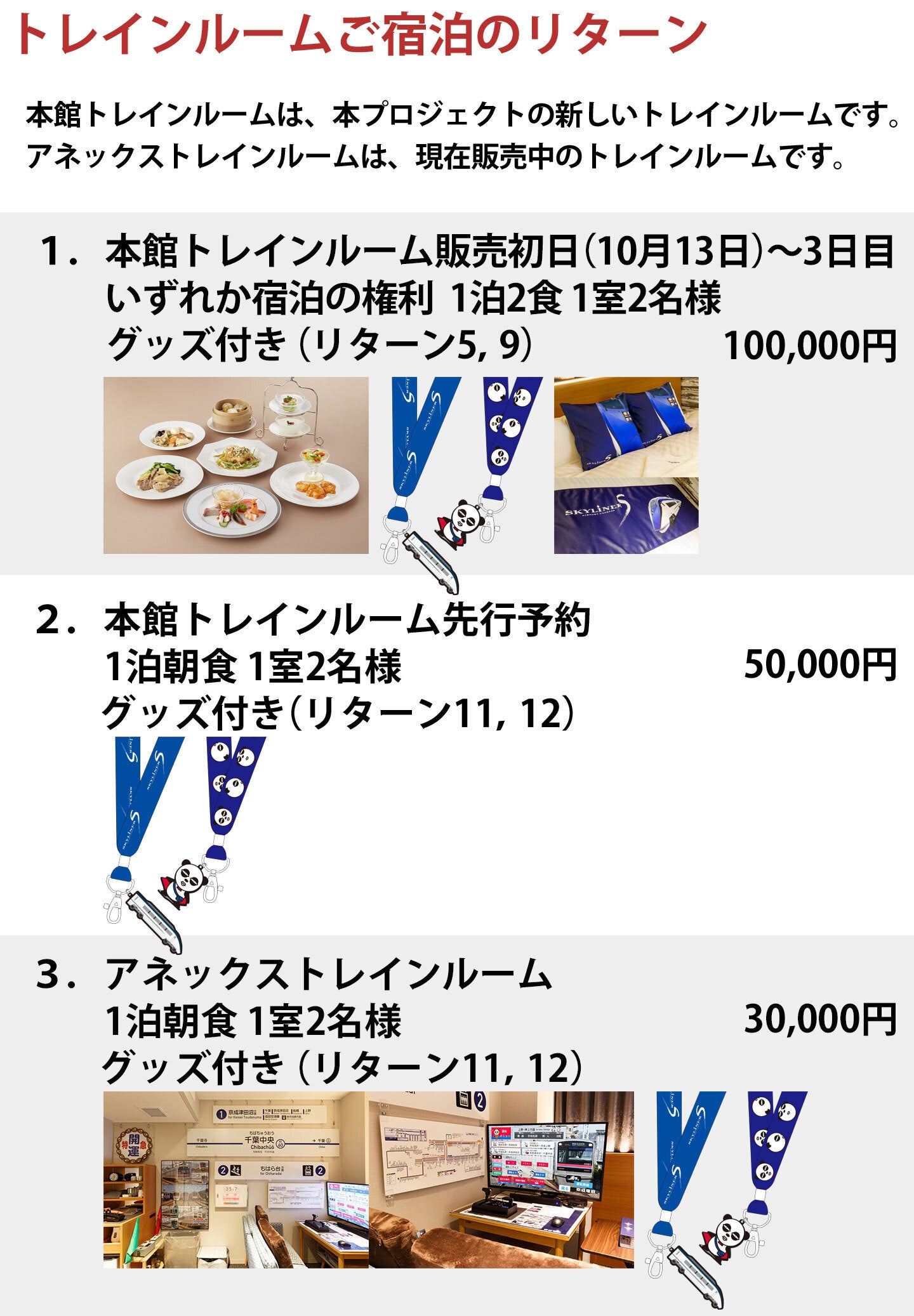 「トレインルームのご宿泊」と「ホテルレストランのご利用」のリターンには、オリジナルグッズをセットにしてご用意しております。