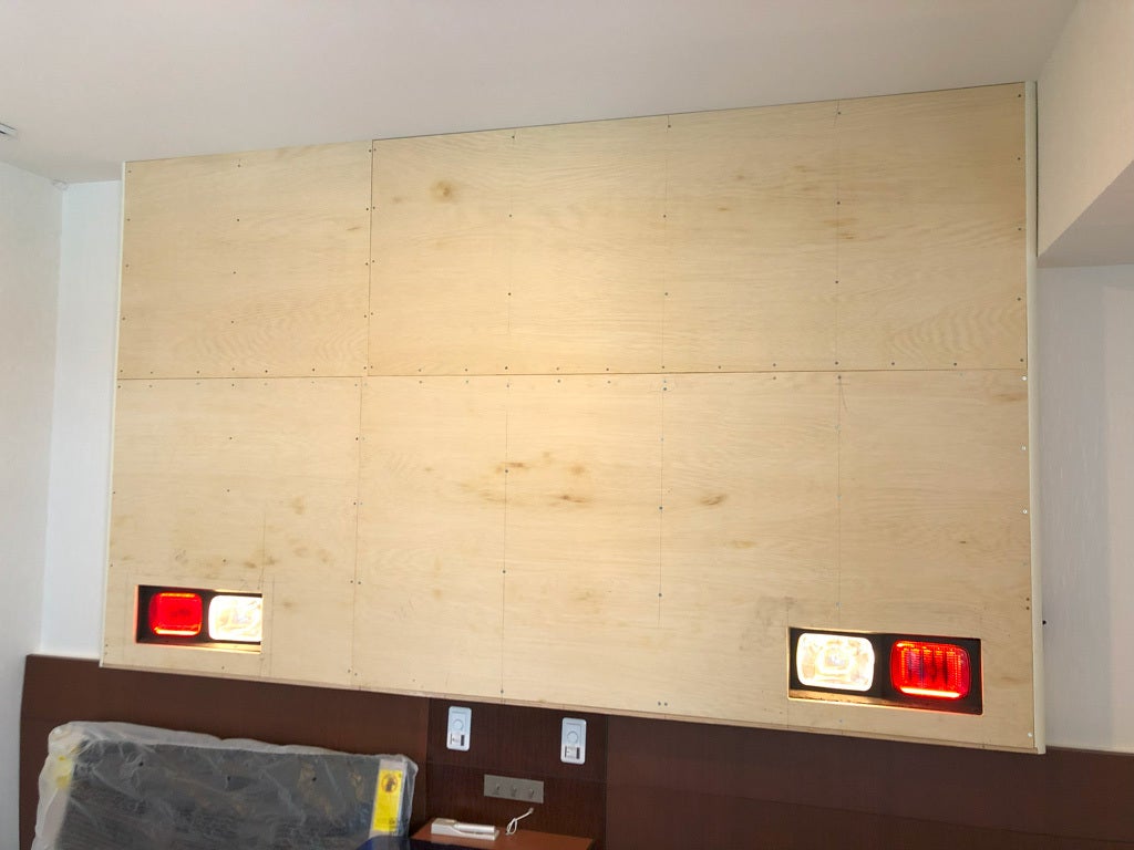 2023/09/24 18:03以前、前照灯をチカっとつけた壁面をご紹介しましたが・・・・・・じゃじゃーんこうなりました!!車幅の実寸にこだわったらアタマまで入りませんでした^^;いや、壁面を企画した当初の設計通りなので間違ってはいないんです。ライトがつくと本格的ですね♪ぜひオン・オフして楽しんでください。また、進捗状況をお知らせしていきます。お楽しみに!! もっと見るプロジェクト達成のお礼