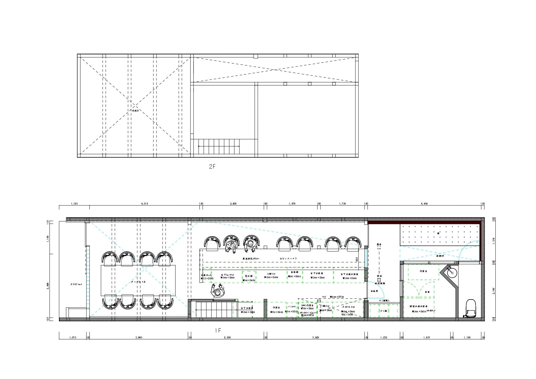 席数は最大20席。カウンター席と大テーブル席、どちらも魅力があるように設計します。