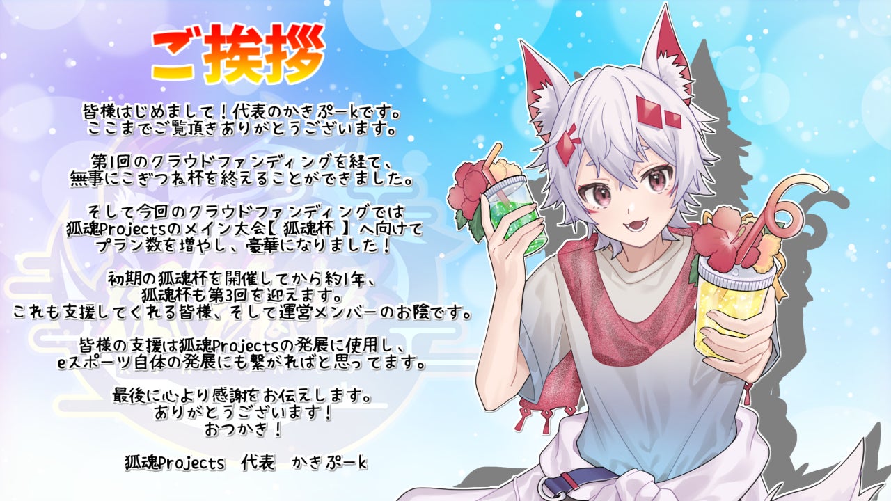 2023年7月22日及び23日実施予定の「第3回狐魂杯」開催資金とします。