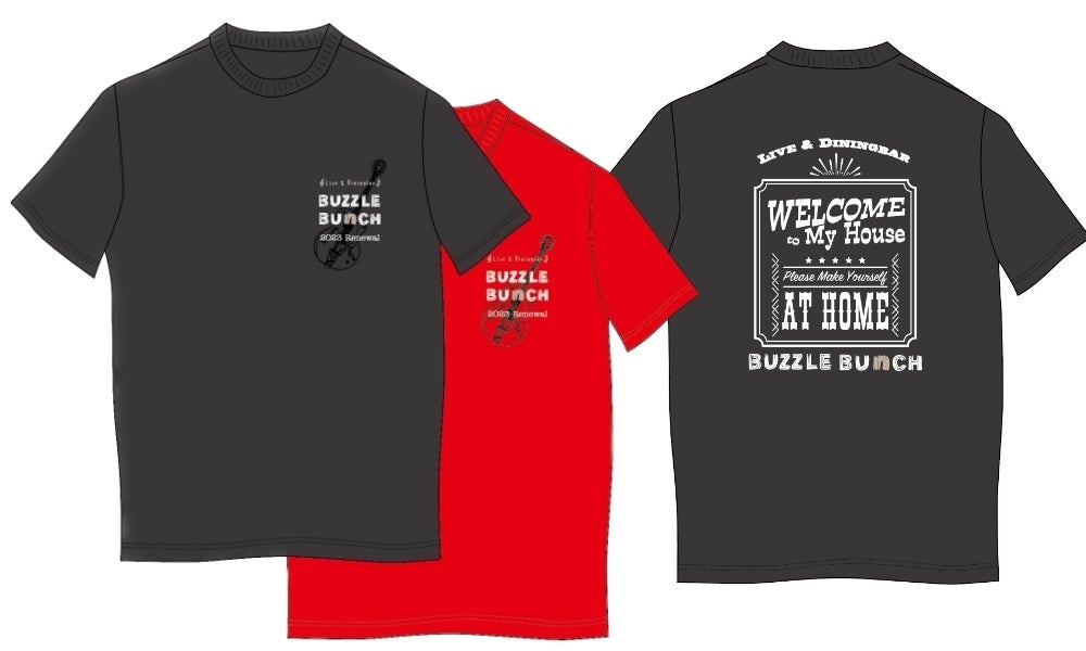 バズルバンチオリジナルのクラウドファンディング限定のTシャツ。黒もしくは赤に表裏プリント、支援数に応じて追加の色展開も考えております。(プロジェクト終了後にメッセージ機能にてカラーの選択とサイズの最終決定をお伺いいたします)着用して来店いただいた方は期間中何回でもテーブルチャージ不要になります!