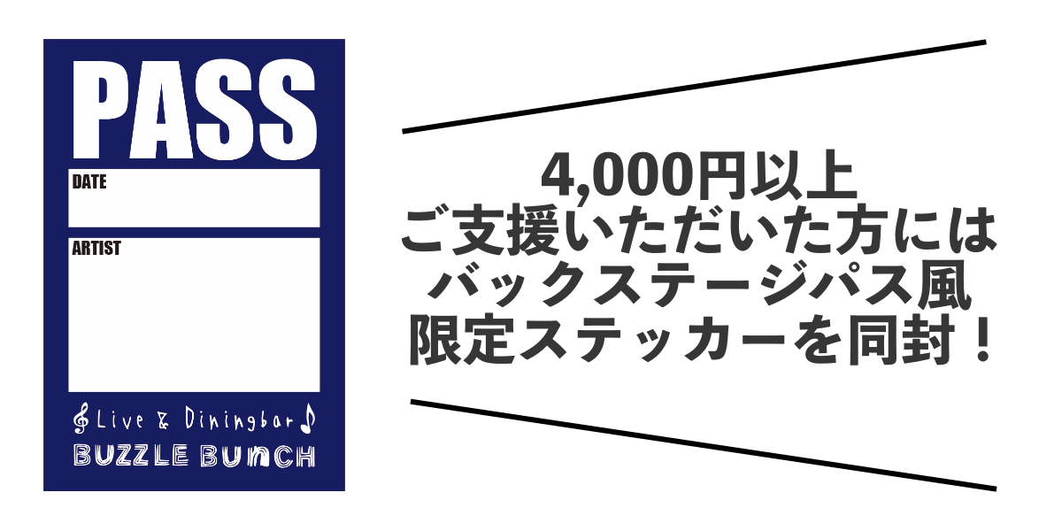 経営上の心配は尽きませんが、これからも生の音楽と美味しい食事を楽しめて地域の皆さんの思い出が詰まったBUZZLE BUNCHを5年10年先も続けて行きたいのです。どうぞ、ご支援のほどよろしくお願い申し上げます。