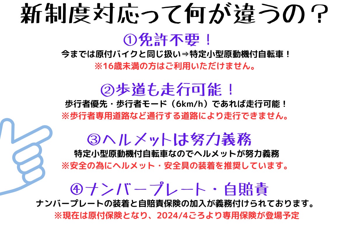 ※特定小型原動機自転車運用における注意点※