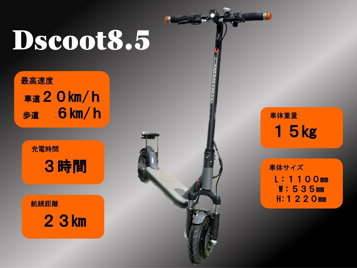 その他、最高速度表示灯など各条件に対応したキックボードとなります