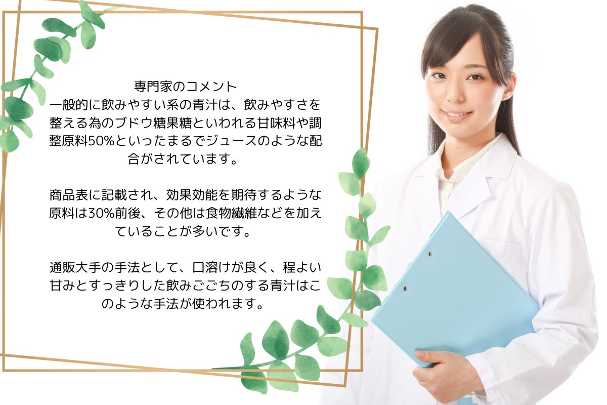 に特化した青汁になっていると専門家の方にも太鼓判を押していただけました。