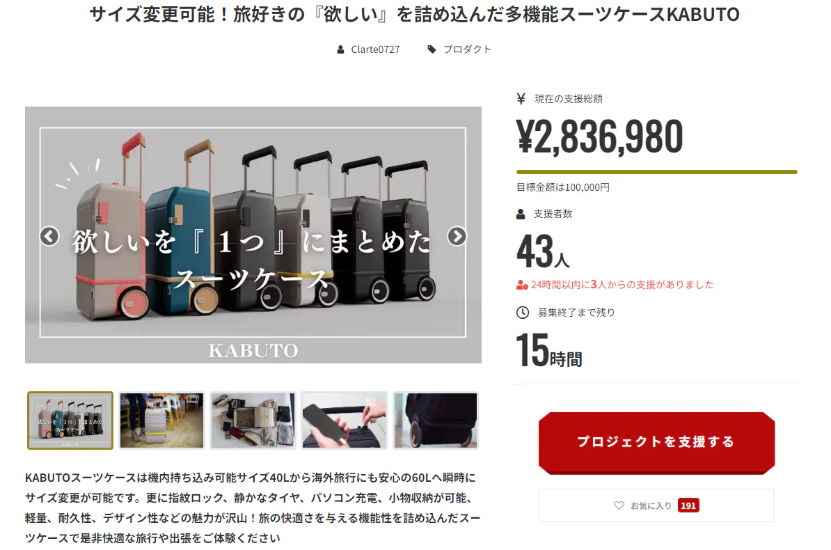 KABUTOスーツケースプロジェクトは本日で終了となります。