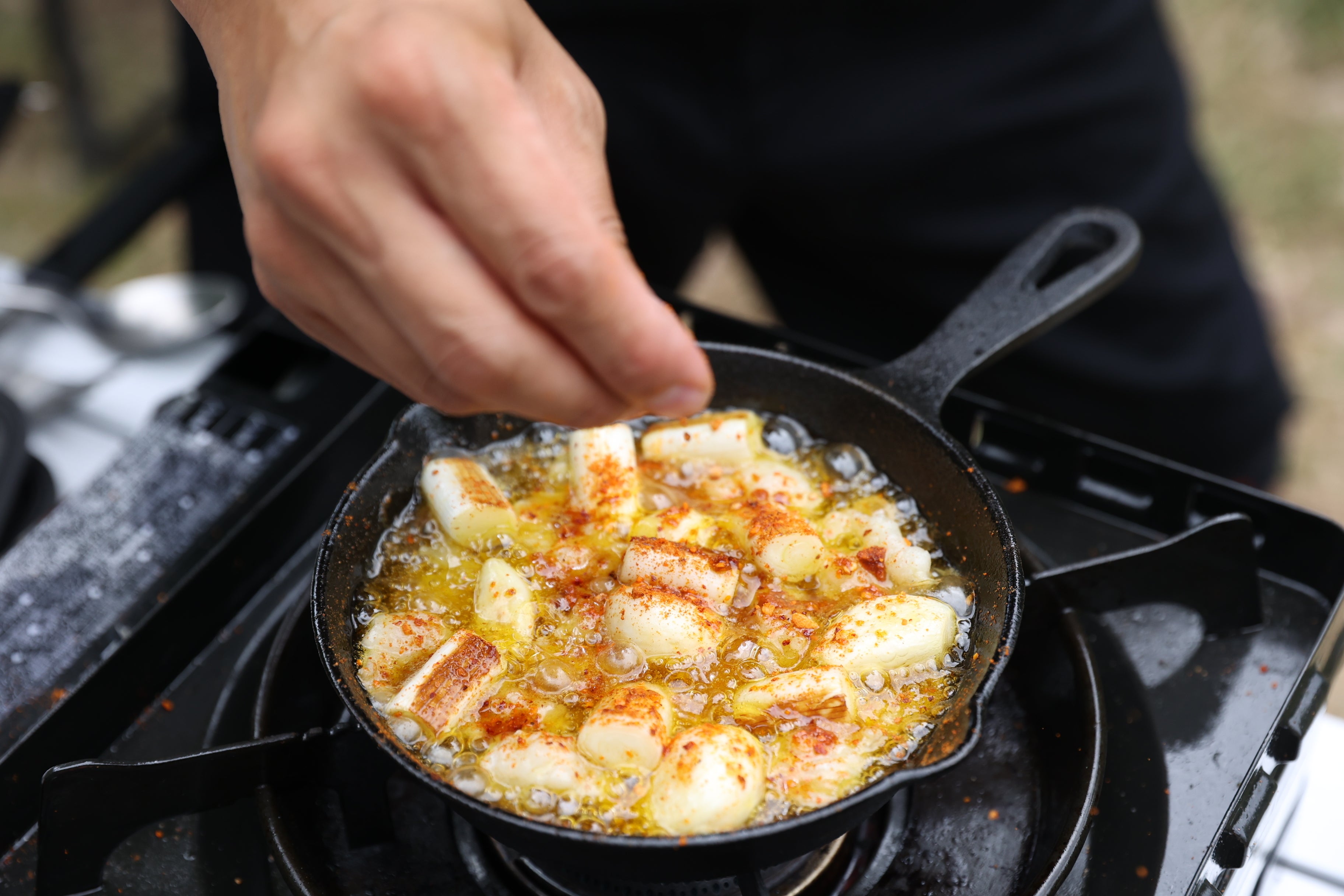 キャンプの定番アヒージョ料理から私はニンニクと牛ホルモンをいちおしで紹介させていただきます。