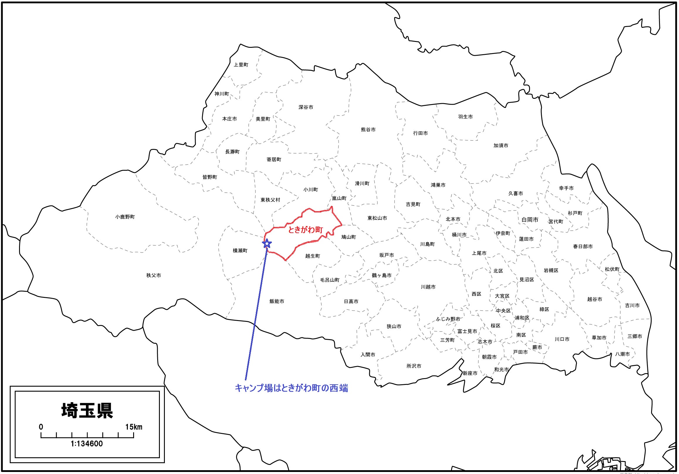 キャンプ場がある埼玉県比企郡ときがわ町は、埼玉県の中央西側に位置し、都心から55km圏内にあります。