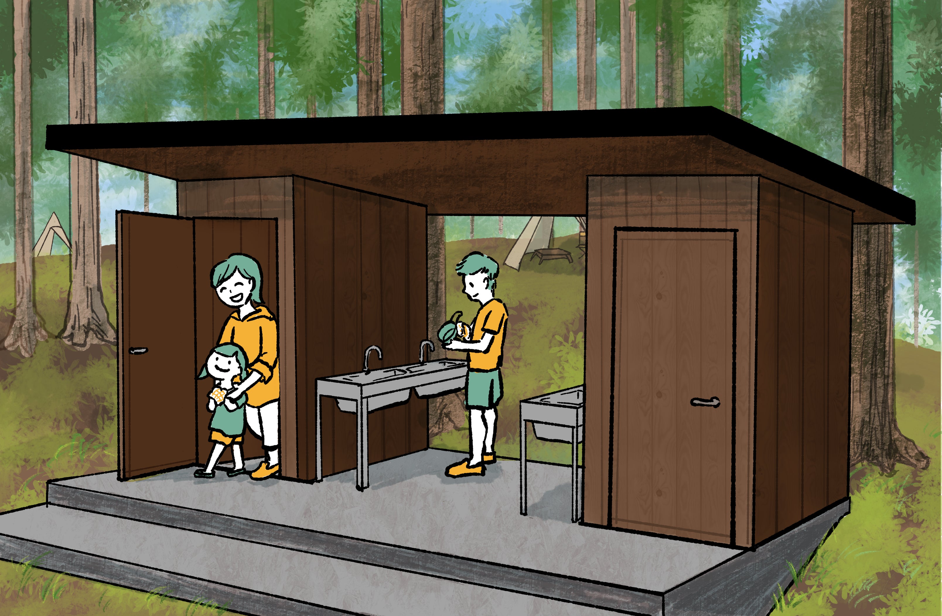 ※トイレや水回りなど使い勝手の部分を最優先にするため、管理棟の建設は少し先になるかも知れません(その間はテントで代用します)
