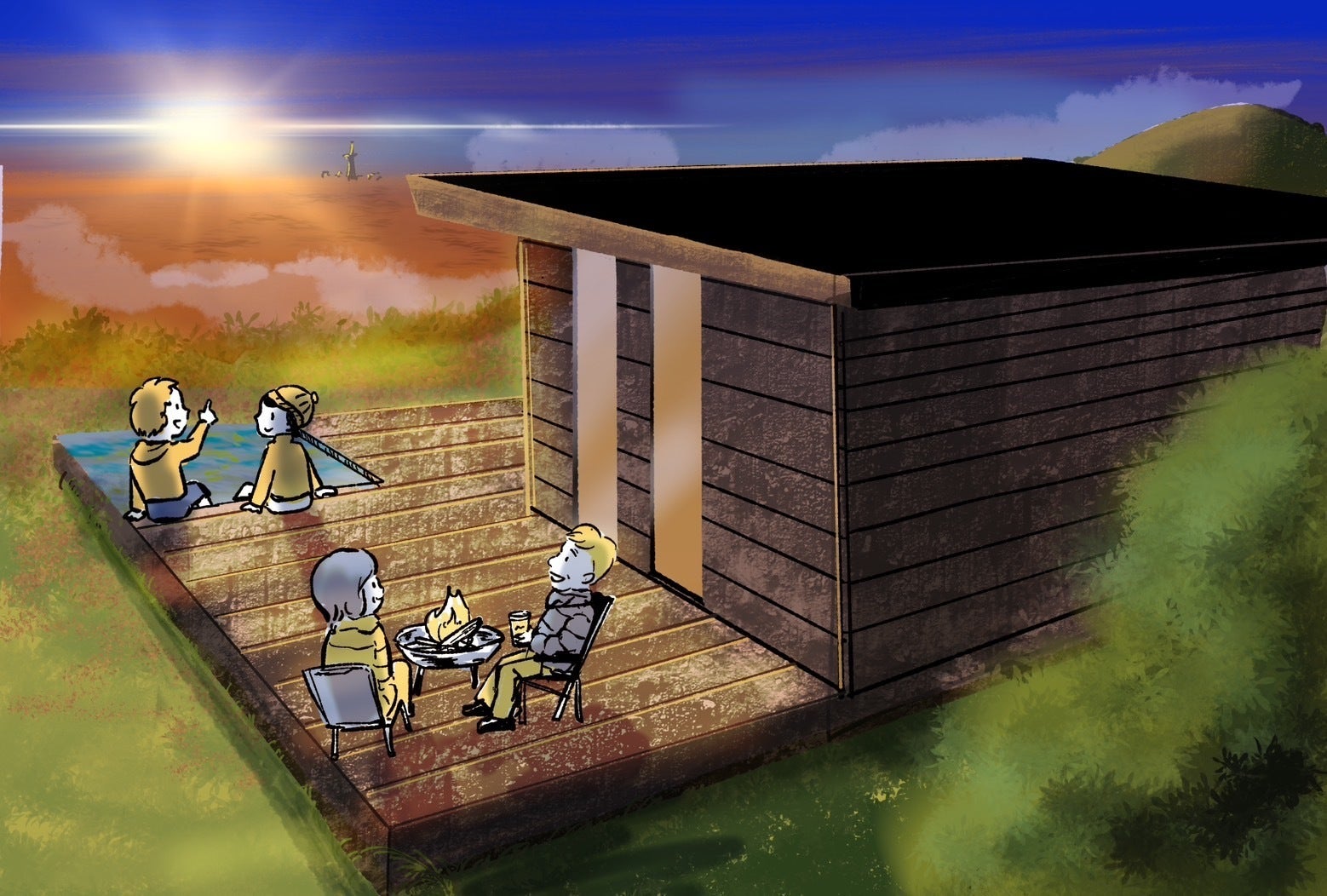 管理棟には宿泊者が利用できるウッドデッキの寛ぎスペースを作ります。もちろん、絶景が楽しめます!