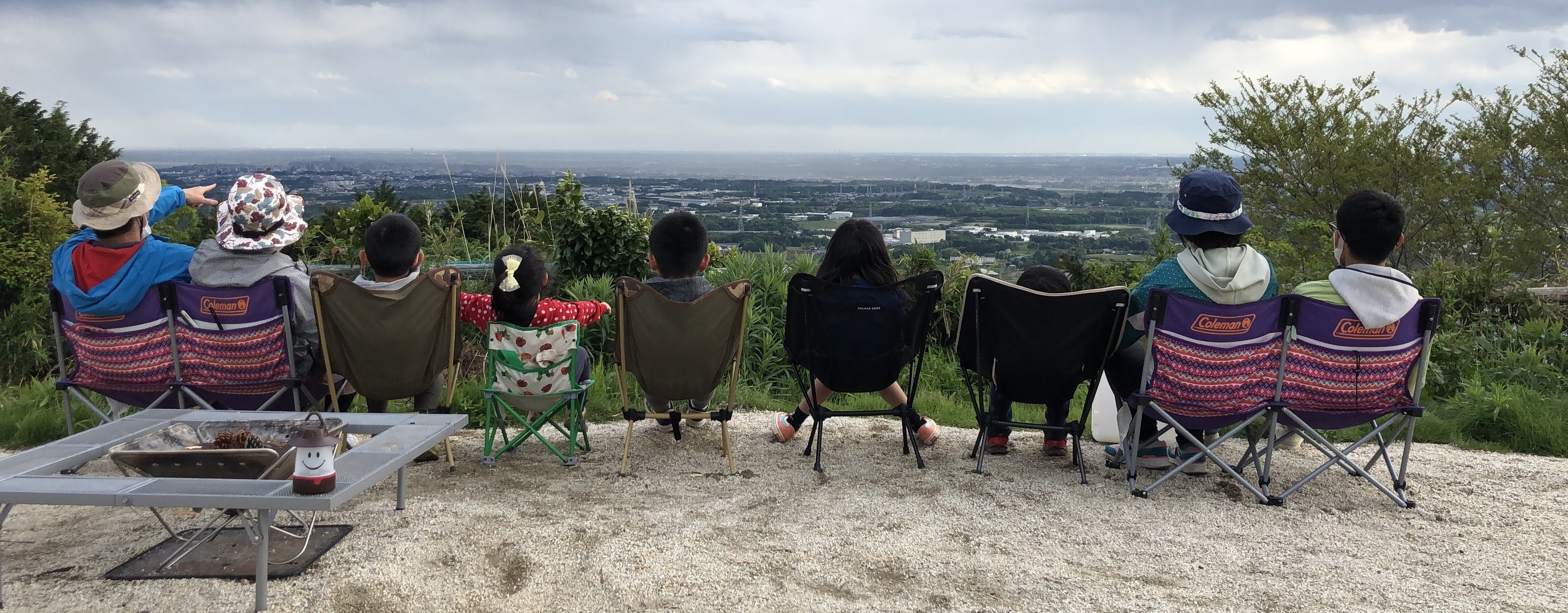 外秩父地域と呼ばれる関東平野の西端から始まる山間部に位置する為、山の上は東側が開けており、関東平野が一望できます。空気が澄んでいる日にはスカイツリーや都心のビル群はもちろん、遠くには筑波山や房総半島まで見えます。キャンプ場は標高850Mの山の上にある為、手前には周辺の低山が続き、その奥には日本一広い関東平野がドーンっと!