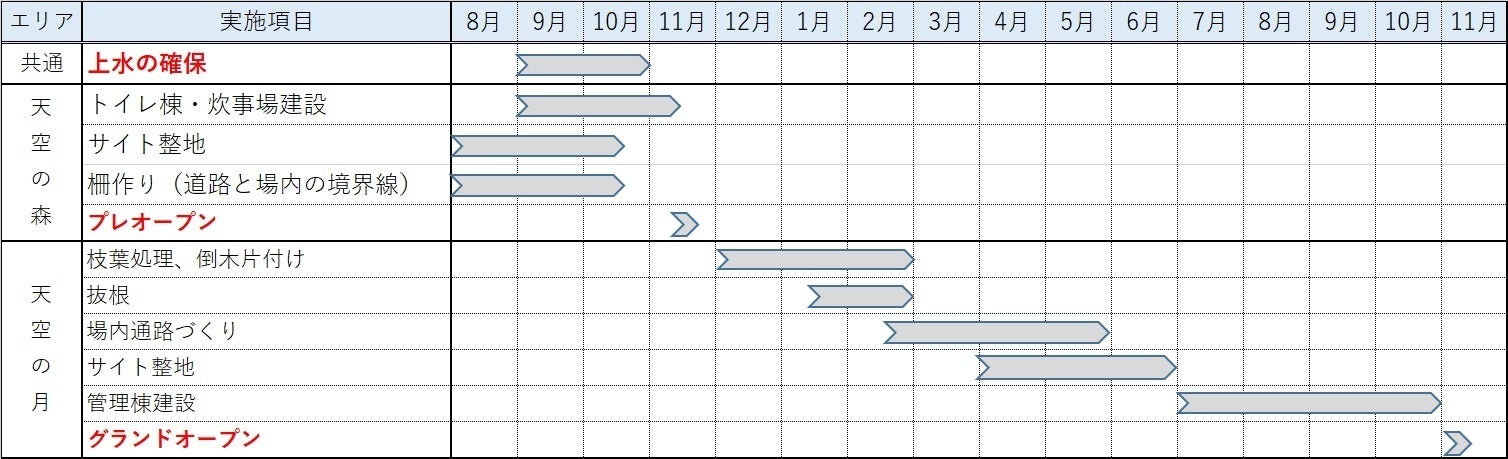 出来る限りDIYで開拓する為、作業の進捗によりスケジュールが大幅にずれ込む可能性がございます。