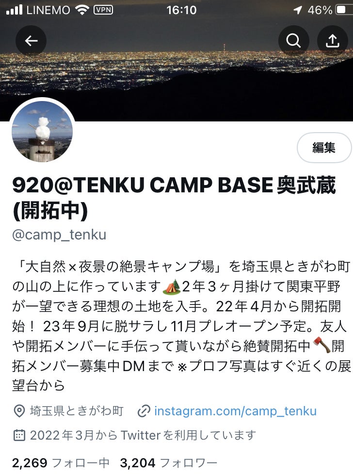 そして、考えついたのは、地元埼玉・奥武蔵の山で、自分が大好きな関東平野が一望できる絶景を楽しめるキャンプ場を作りたい!