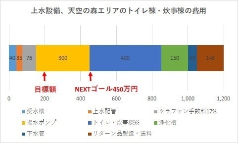 当初の目標金額は、上水確保の為の費用を一部だけでも賄えればと思い200万円に設定させていただきましたが、正直これだけでは足りず、その他にもトイレ棟、炊事場とまだまだプレオープンまでには沢山の費用が必要になります。
