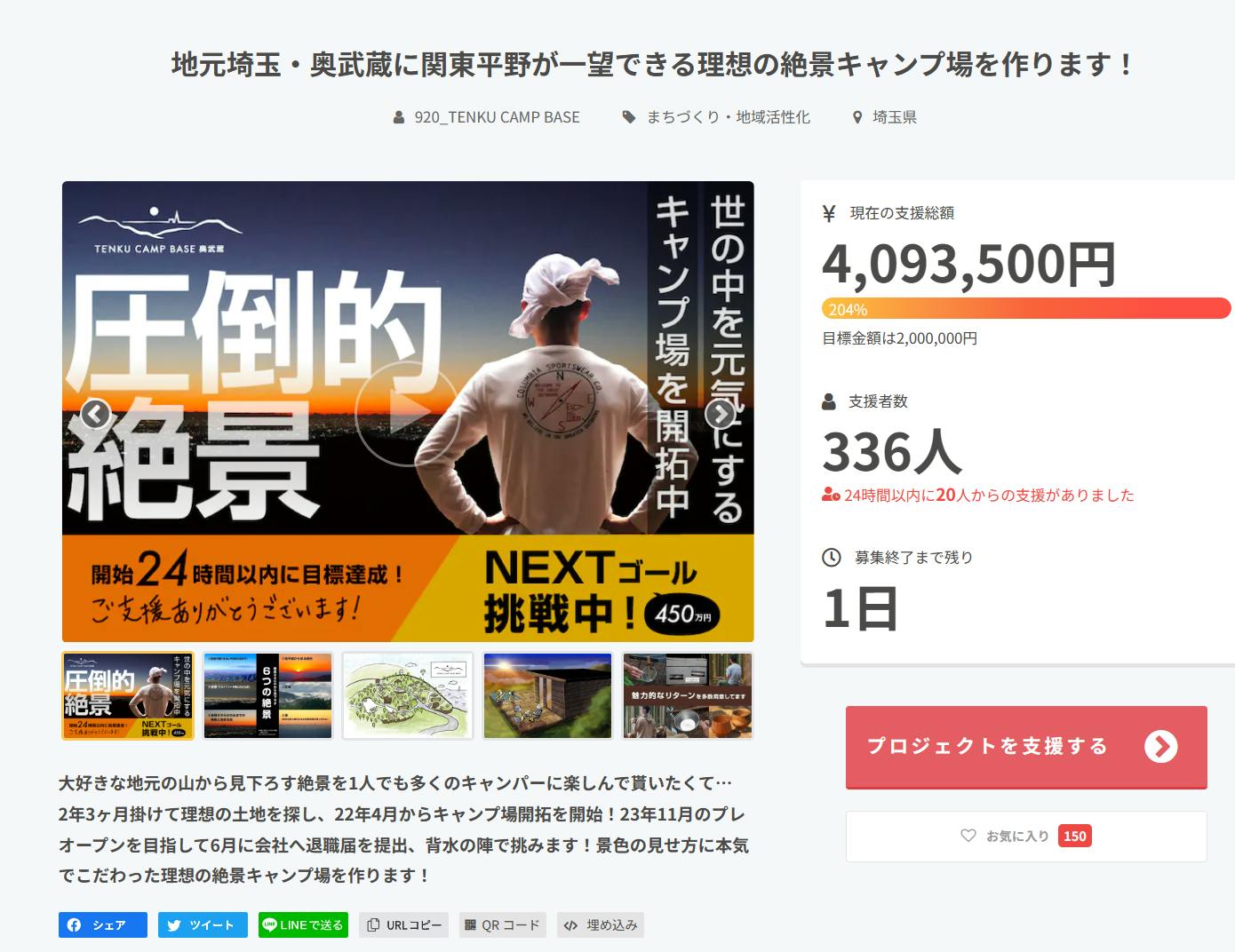 昨日、目標金額の200%を越えまして、400万円の大台にのりました!!