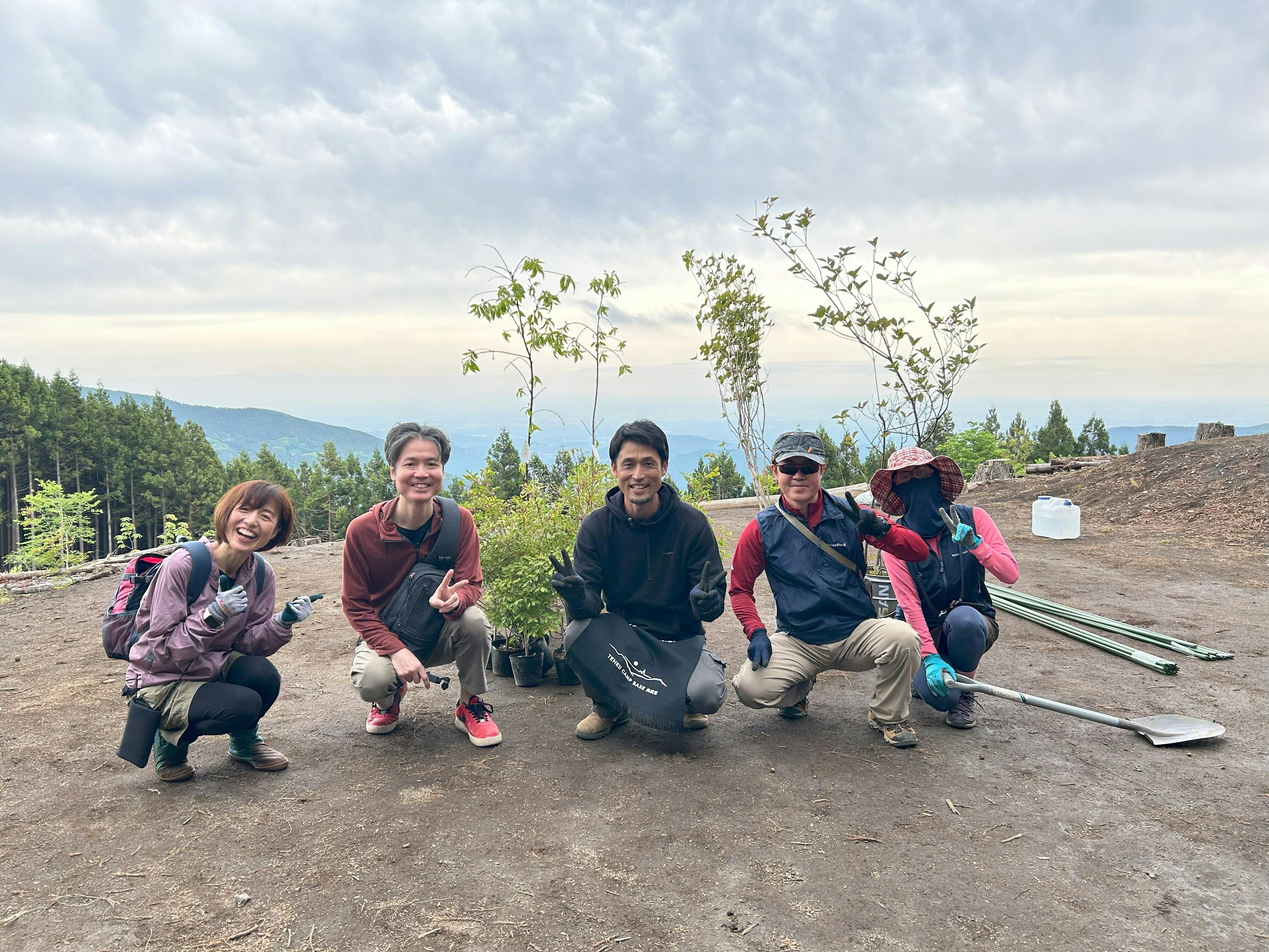今回の植樹会以外にも杉・檜を伐採したキャンプ場隣接地(現在、営業している「天空の森エリア」の下側)にはヤマモミジ、ドウダンツツジ、淀川ツツジ、ナンテン、シマトネリコなどを既に計100本以上植樹いたしました。