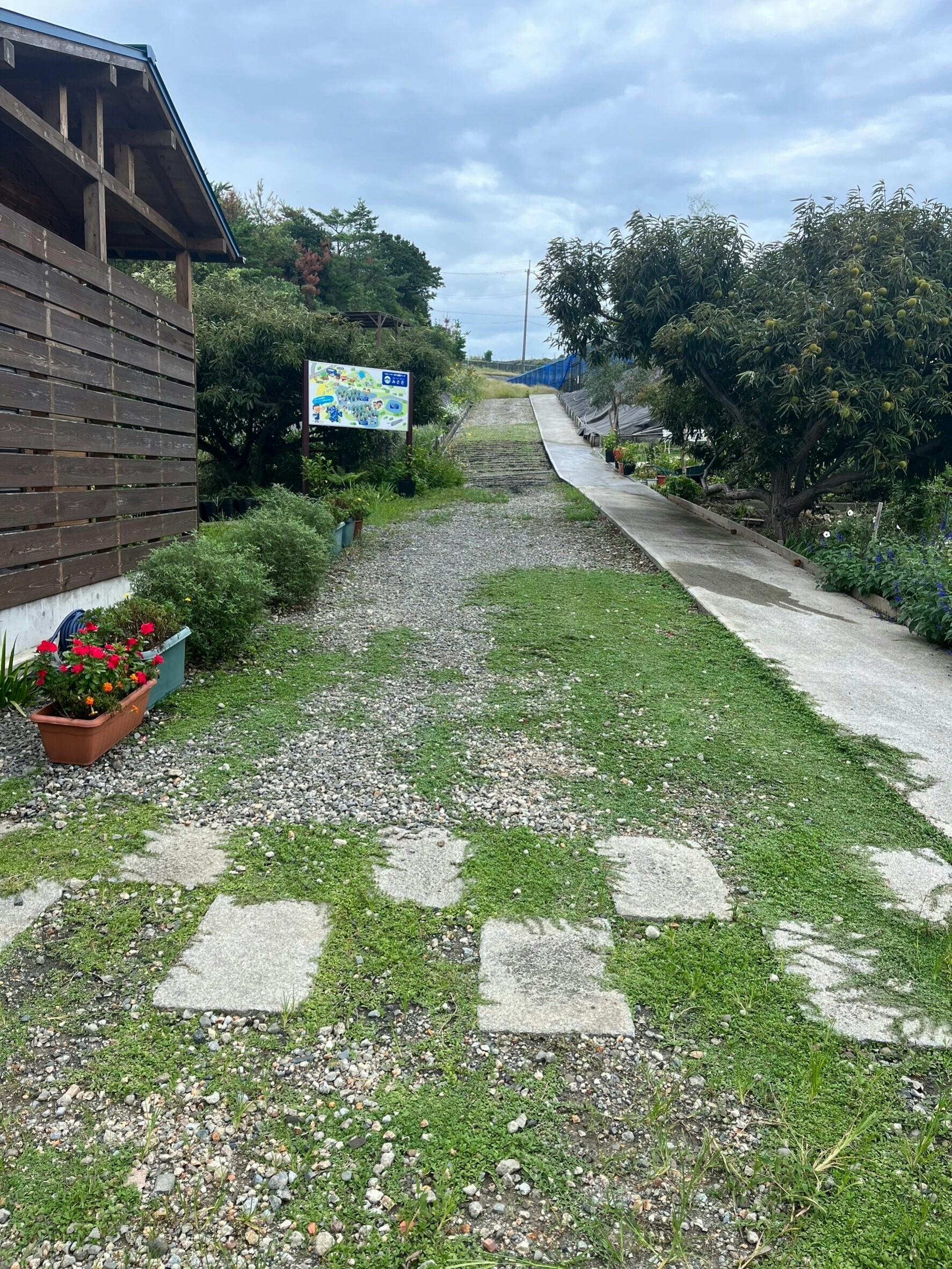 砂利道だった通路に緑が広がってきました。