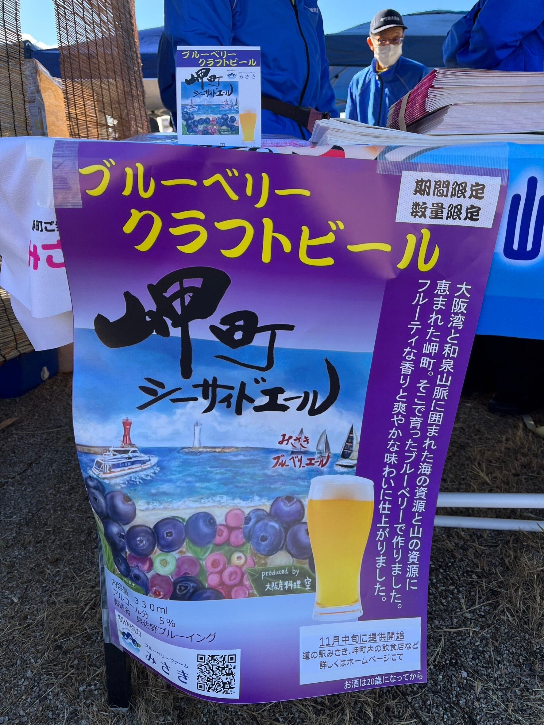 さわやかな秋晴れとなった日曜日、3ヶ所のイベント会場で当ファームのブルーベリーを紹介することが出来ました。岬町の深日漁港ふれあい広場にて、「第11回深日漁港ふれあいフェスタ」が開催されました。地元のお店や団体など80店舗以上が出店するイベントです。岬町観光協会の出店ブースで観光PRのお手伝いをさせていただきました。 みさき公園駅前で行われるイルミネーションイベント「みさきの光宴」(2023/12/16~2024/1/14)のPRと、まもなく完成するブルーベリーのクラフトビールもPRさせていただきました。 昨日、「G7大阪・堺貿易大臣会合」の歓迎レセプションで、「大阪産ブルーベリーのクランブルマフィン」を、PRしていただいた、岬町の田代町長がブースに来てくださいました。「ブルーベリーのクラフトビール」のPRもしていただきました。 同じく、「G7大阪・堺貿易大臣会合」の歓迎レセプションで、「大阪産ブルーベリーのクランブルマフィン」を、PRしていただいた、地元の衆議院議員 伊東信久様がブースに来てくださいました。「ブルーベリーのクラフトビール」のPRもしていただきました。 同日に泉佐野市のフェスにブース出店し、「ブルーベリークラフトビール」をPRしました。 Studio & Cafe Chakulam Presents「UMUフェス」(りんくう野外文化音楽堂)の出店ブースです。 さらに同日に、大阪京橋で開催されている、「ビア・ブラボー」で「ブルーベリーのエール」として販売されました。 日本全国から地ビールが大集合する祭典したクラフトビールのイベント「ビア・ブラボー」 は、最終日でした。 次の週末はイベント会場でブルーベリーのクラフトビールが飲めます。■11/3~5開催 なんばソトフェス(なんばパークス)https://namba-sotofes.com/ ぜひぜひ、イベント会場に来ていただき、出来立てのブルーベリーのクラフトビールを味わってみてください。 ブルーベリーのクラフトビールのクラウドファンディングは、いよいよ本日終了です。ご支援をよろしくお願いします。 ====================10/31まで!!クラウドファンディングで広く支援者を募っています====================クラウドファンディングでは、ブルーベリー関連のさまざまなリターン(返礼品)を用意しています。一番の人気のリターンは出来上がったクラフトビールの詰め合わせです。その他、ブルーベリー狩りの入園チケット、ブルーベリーの宅配、ブルーベリーの樹の年間オーナー制度権、ブルーベリーのかんたん栽培キットなど、ブルーベリー関連のリターンが多数。 ====================最終ゴールまで!!クラウドファンディングで広く支援者を募っています==================== くわしくはこちらのサイトでご案内しています。https://camp-fire.jp/projects/view/681237