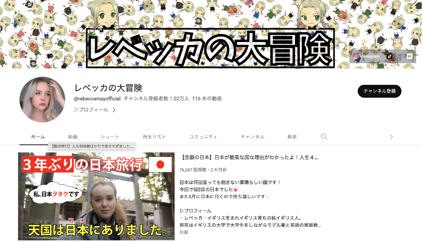 日本が大好きで、SNSでは、文化交流、日本旅行、英語学習などについて発信しており、