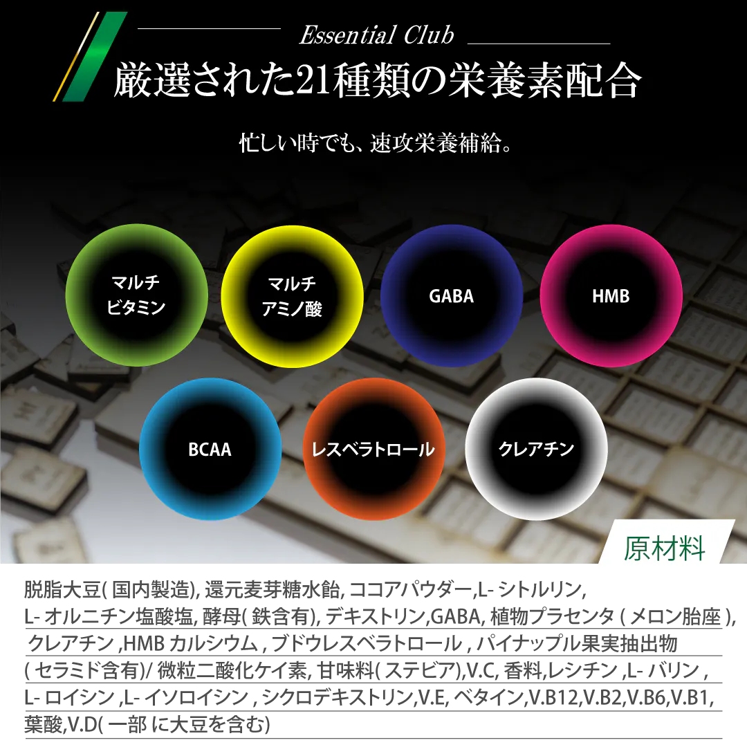 タンパク質21gを含む計21種類の厳選した栄養を配合したサプリメントを開発しました!