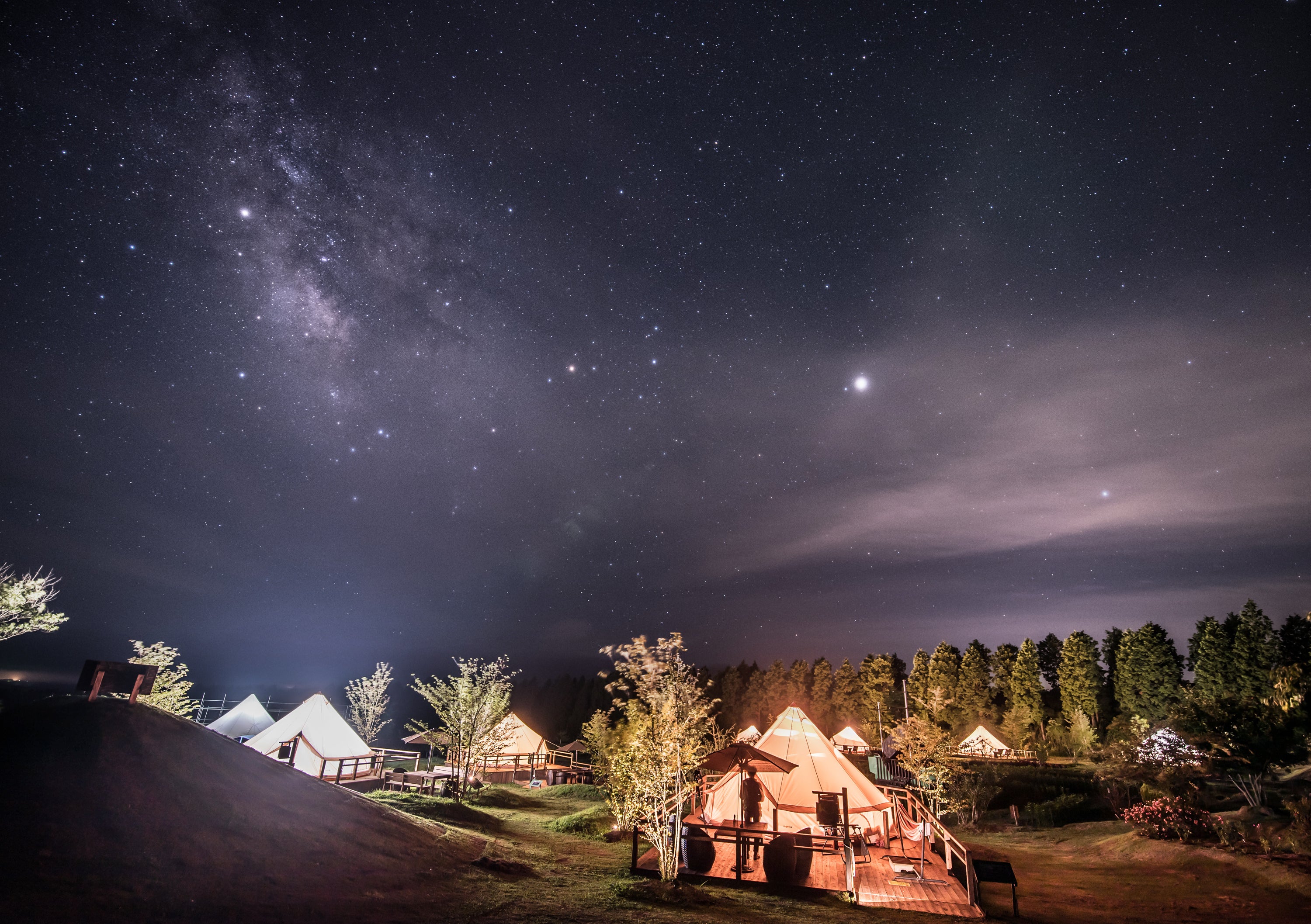 キャンプ体験をより身近に、くじゅうの花と星をより身近に感じていただける施設にしていきたいと考えています。