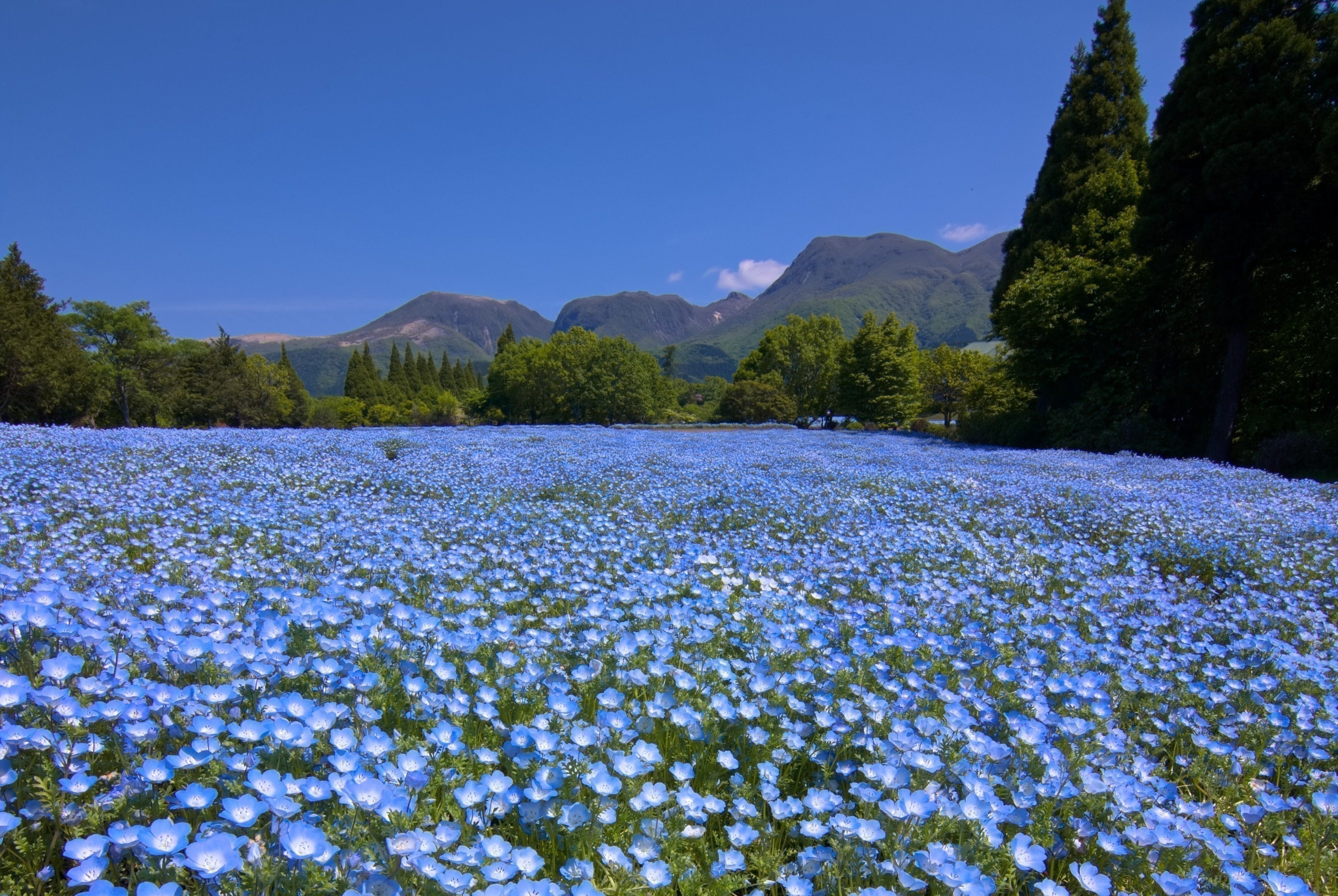 大分県竹田市にあるくじゅう花公園は阿蘇国立公園内の久住高原に位置し、日本百名山のくじゅう連山や遠くに阿蘇五岳を背景とした美しい自然が満喫できる花公園です。