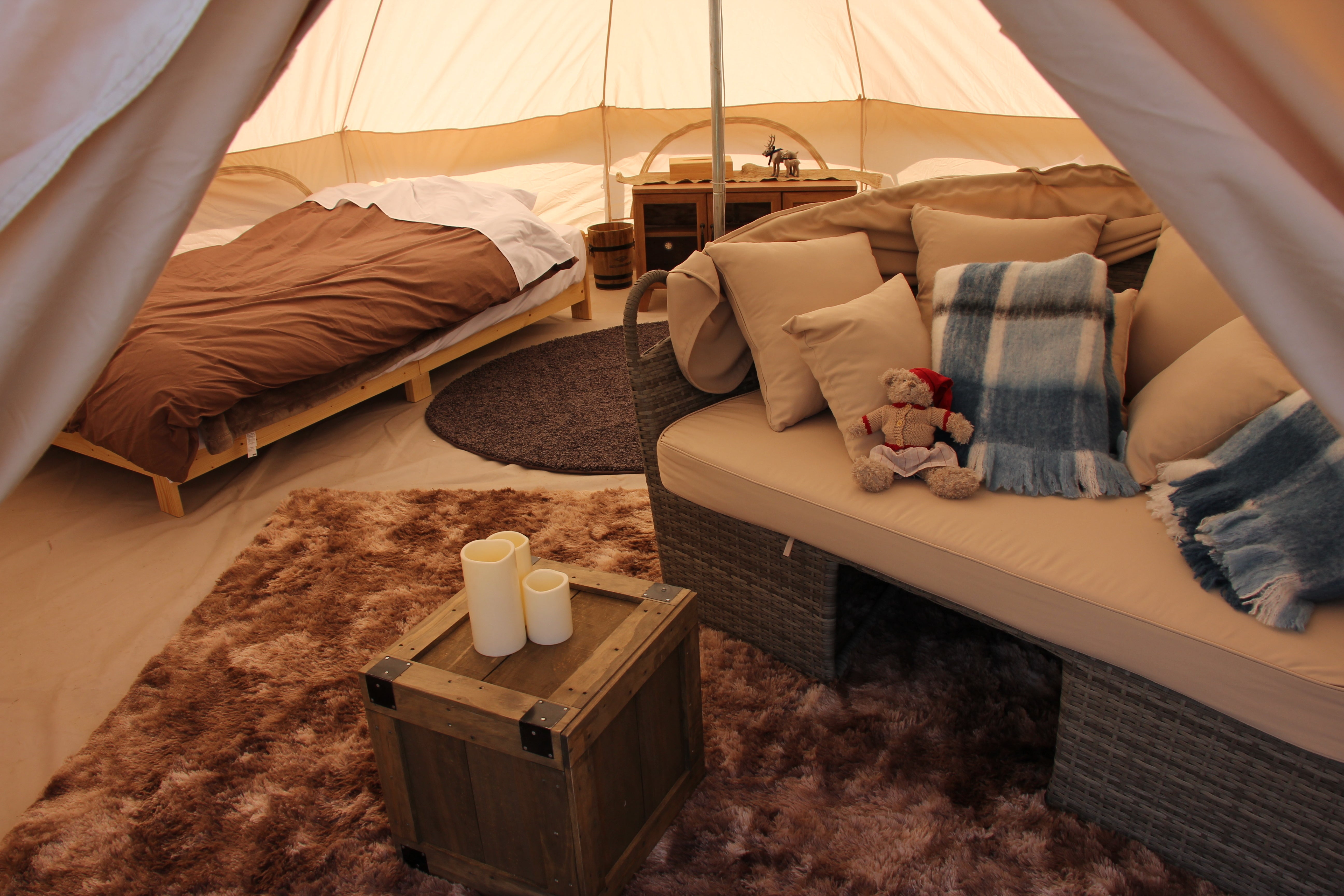 そんな声にお応えしたく、居住スペースであるテント内はオシャレでラグジュアリーな空間にします。