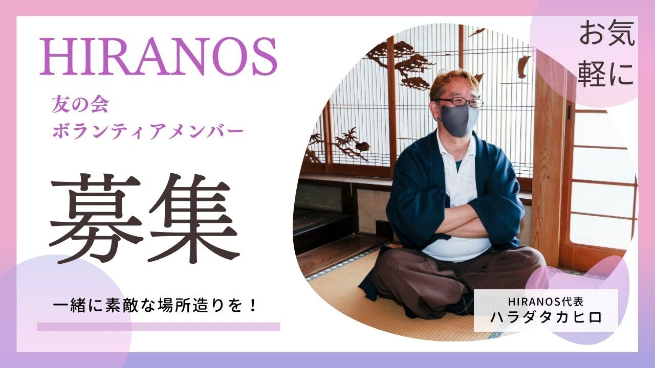 HIRANOSでは一緒に場所作りをしてくれる仲間を募集してます、お気軽にご連絡ください