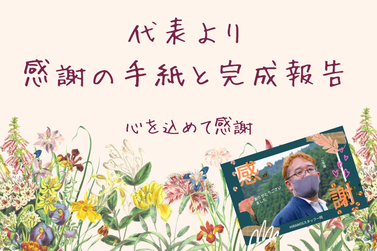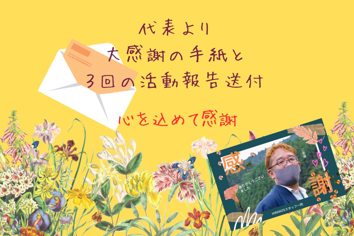 HIRANOS代表より感涙の大感謝のお手紙と3回の活動報告をお届けします