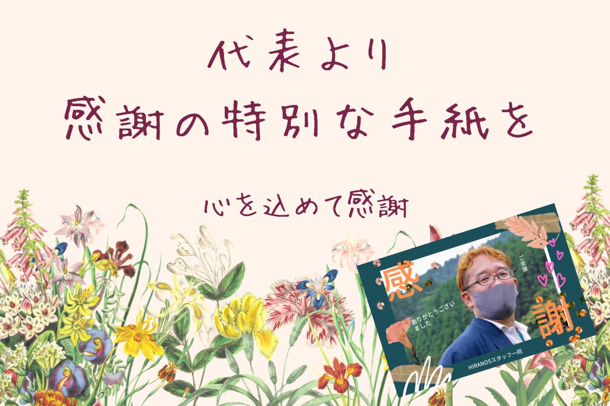 当代表より、めちゃめちゃ感謝を込めたお手紙をB5サイズ1枚に書いて封書にてお届けします、