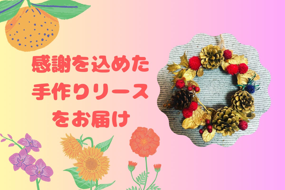 HIRANOSの周辺にある天然の素材を使用して手作りリースをお届けします、直径約20センチほどを予定しております。天然の素材を使用するため、見本とは違うデザイン、配色になる場合がございます。ご指定はできません、気象等の原因により製作発送が遅れる場合もございます、その際はメールにてご案内させていただきます。