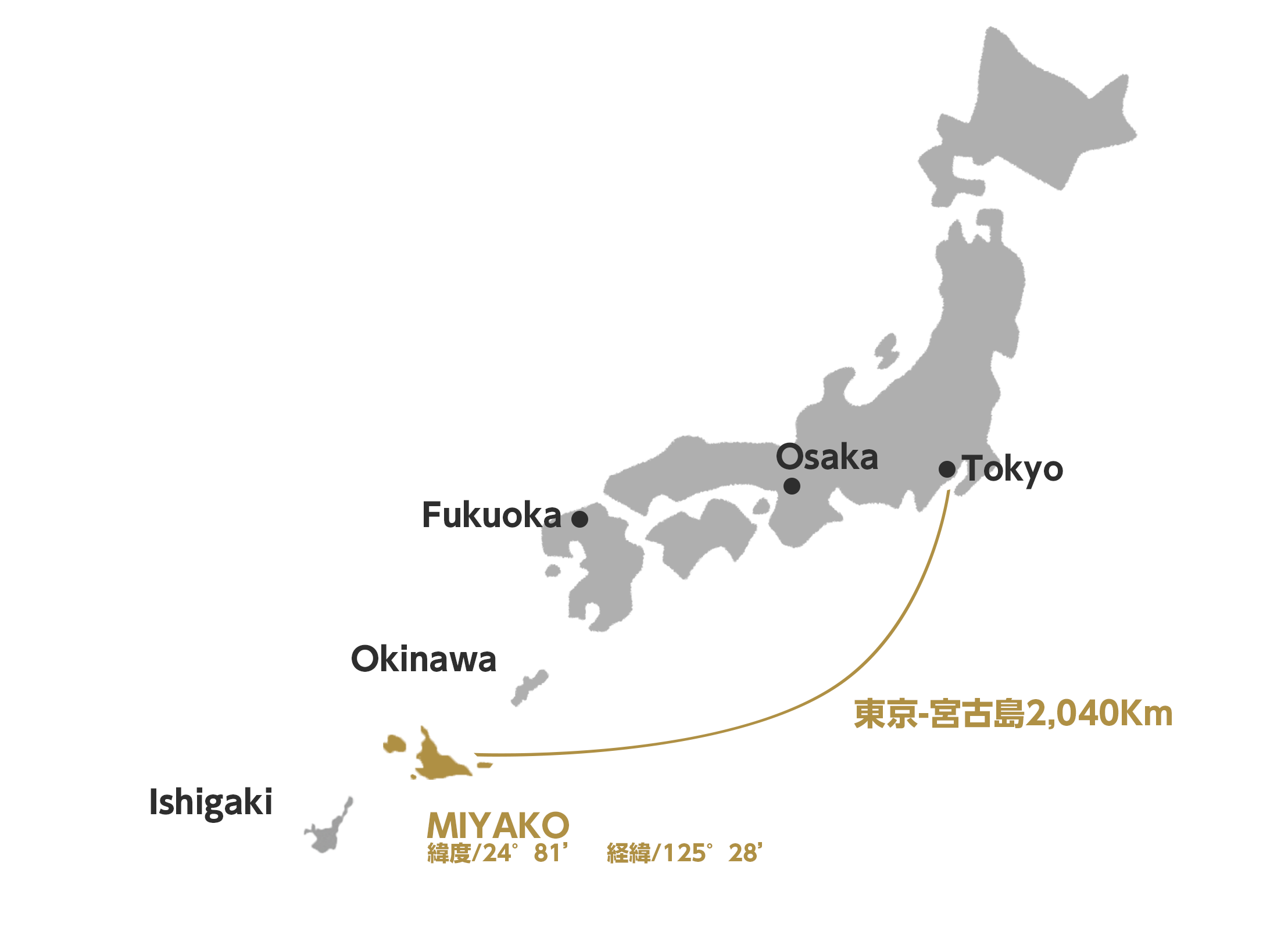 宮古島は東京からはおよそ2,000km、沖縄本島からもおよそ300キロ離れた宮古諸島の中心に位置する島です。