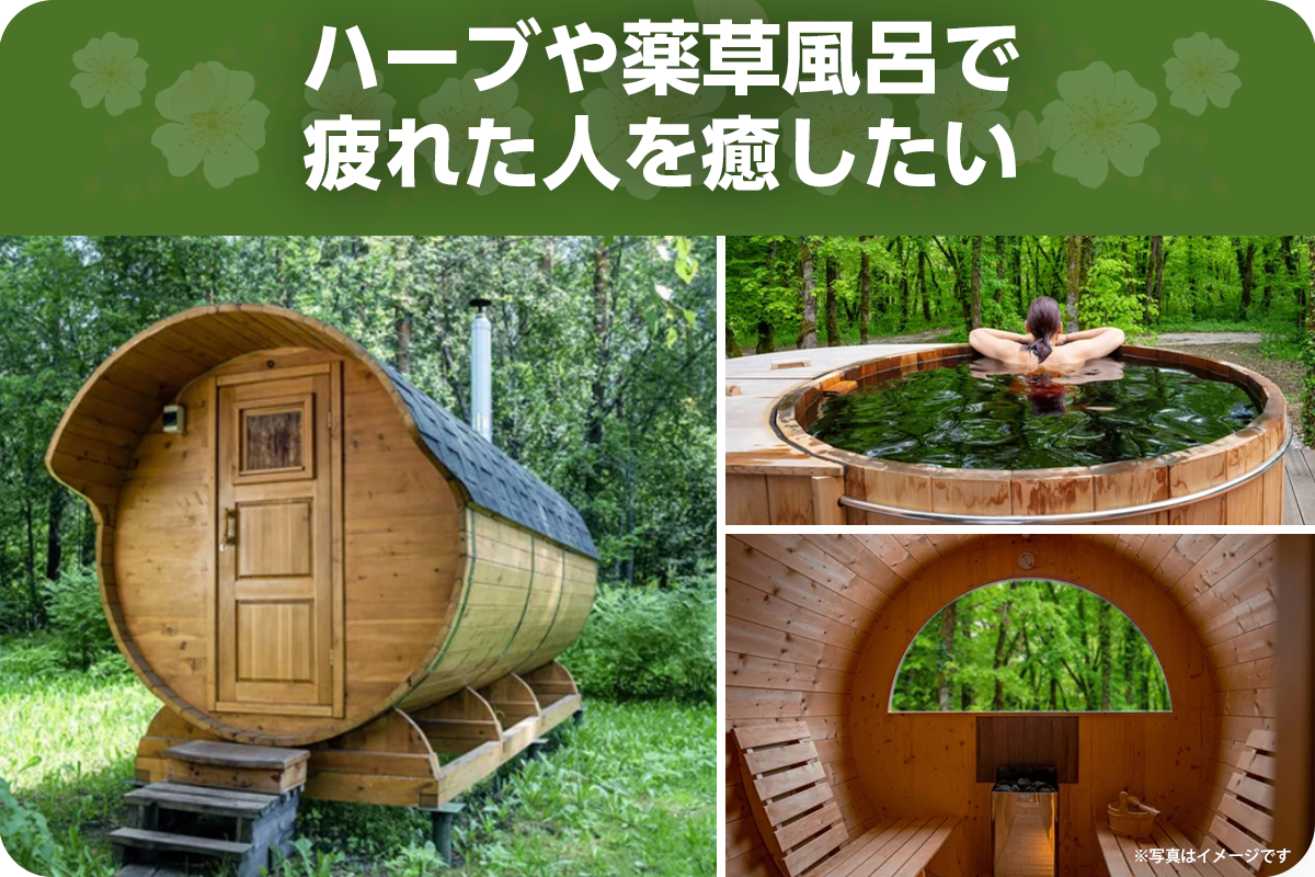 オリジナルのハーブティーを飲み、薬草風呂にじっくり浸って、カラダを整える。