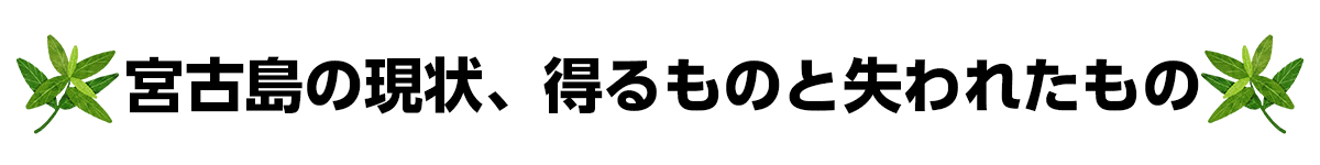 現在の宮古島は経済的な繁栄の光の部分とこの島に受け継がれた村落祭祀や祈り、薬草文化の消失という影の部分の両方の側面があります。