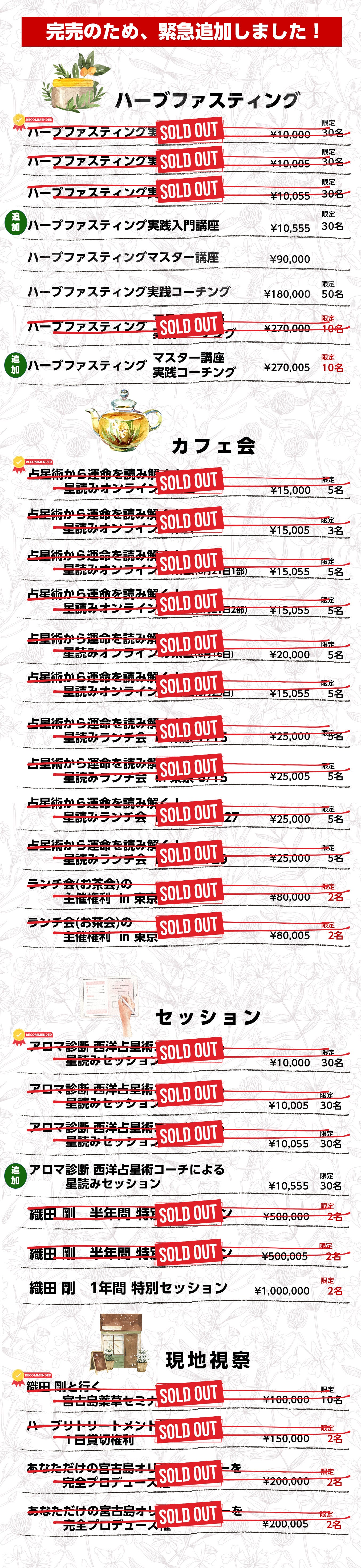 「ハーブファスティング」「カフェ会」「セッション」「現地視察」の4つの項目がありますが