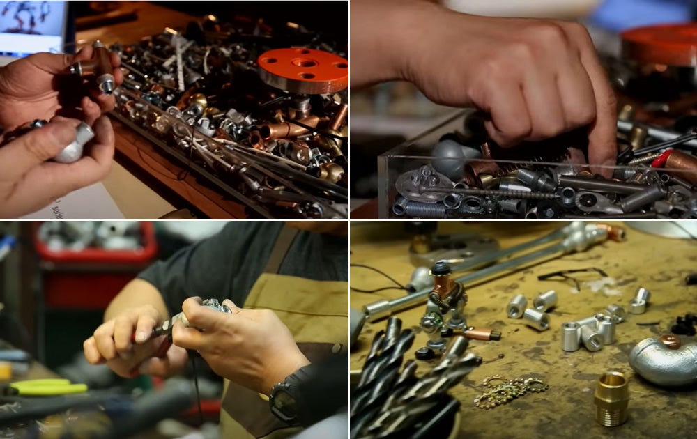 様々な配管材や電線などを組み合わせて、全く新しい創造的価値のある製品を作り出します。製品はすべて一つ一つ職人の手により、ハンドメイドで組み立てられます。
