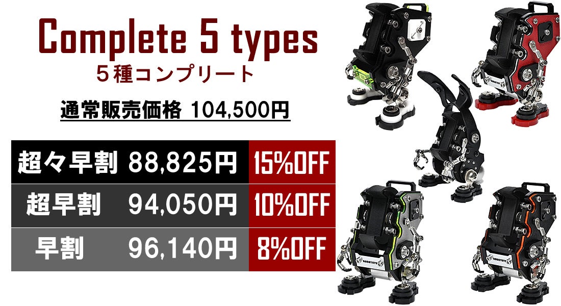 2023/08/24 09:53支援者のみなさまこの度は「ROBOTOYS ロボット型アップルウォッチスタンド」プロジェクトをご支援いただきありがとうございます。8月23日(水)をもちまして、応援購入は終了いたしました。多くのサポーター様からご支援とご応援をいただけました。改めて当プロジェクトをご支援してくださったサポーター様に心より感謝申し上げます。1日でも早く皆様のもとへをお届けできるようスタッフ一同進めて参ります。引き続き、よろしくお願い致します。 もっと見る