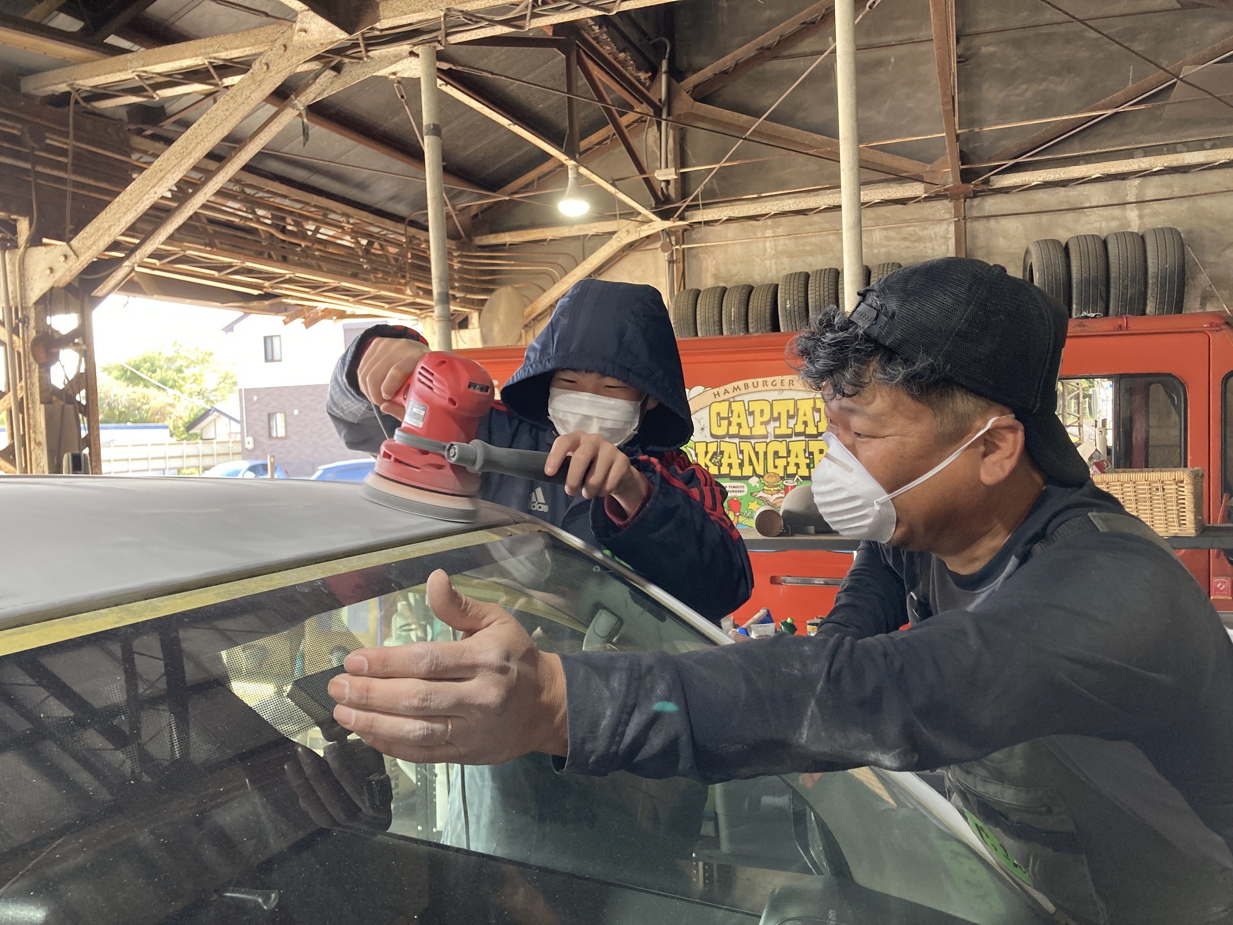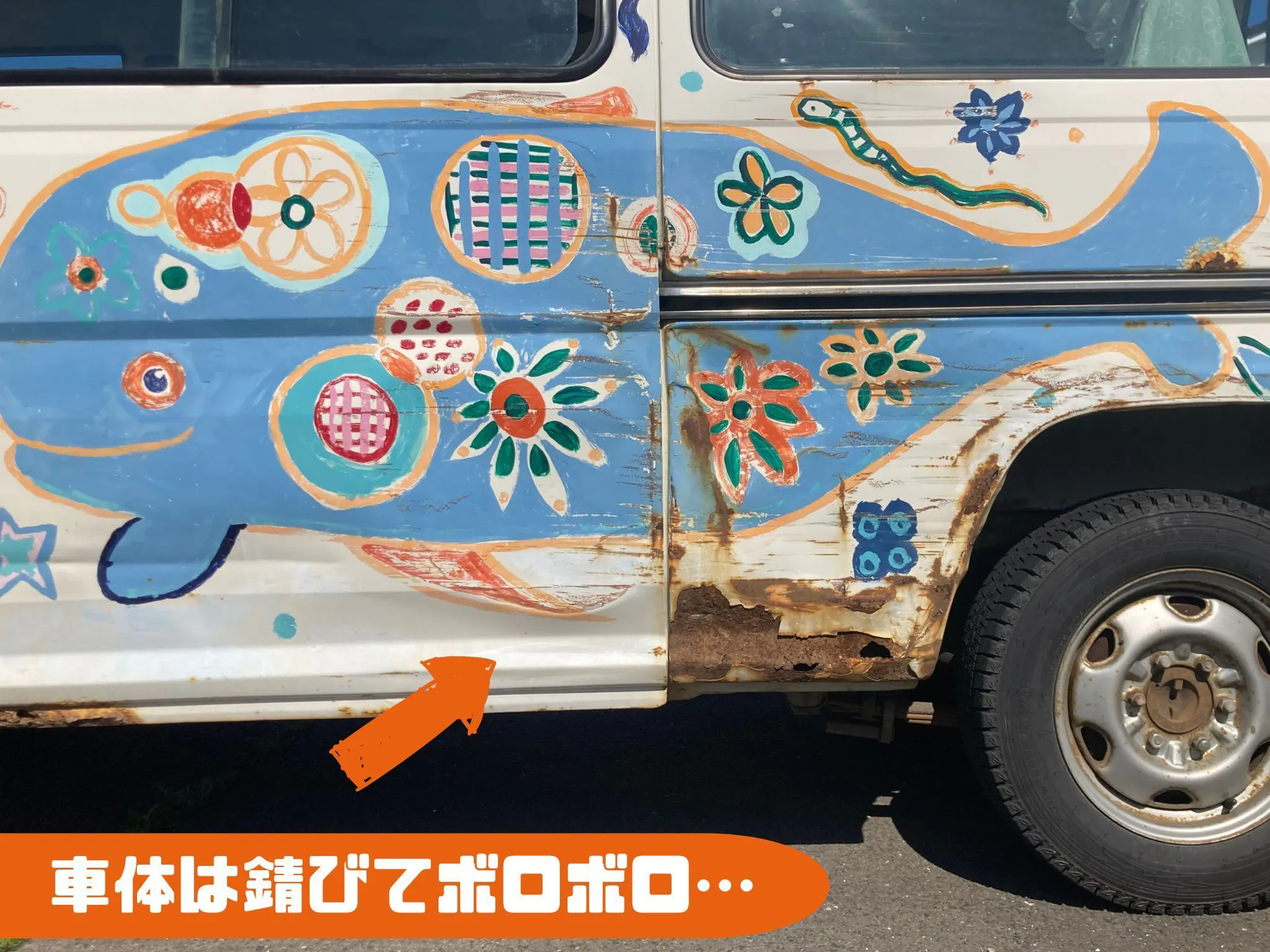 2023/11/04 08:00報告が遡りますが、2代目空飛ぶくじら号の車体を塗り替えた時の様子をご紹介します。10月中旬、オークションに出展されている数ある車の中から2代目空飛ぶくじら号が決まり、整備を終えたと車屋さんから連絡が入りました。これでいつでも納車できる状態でしたが、くじら号ちゃんの車体はグレー。車体に絵を描くためには白に塗り替える作業が待っていました。ガラスや取っ手を養生し、塗装をはがして洗って、またはがして洗って、油を落として…この作業を10月23日にフリースクールの子どもたちみんなでやりました。思った以上にたいへんな作業で、8時間以上みんな本当に頑張りました。正直、子どもたちがこんなに長い時間一つのことに集中した姿は初めて見ました(泣)きれいに塗れたね。子ども達も自画自賛してて、中には「こんなにきれいに塗れたところに絵を描くの嫌だな…」とつぶやく子もいました(笑)ありがたかったのは車屋さんの大西夫妻が子どもに温かく接してくれたことです。一緒に作業をしてくれるだけでなく、まるで自分の子どものようにフランクに接してくれて、専門の機械の使い方も丁寧に教えてくれて。その姿はお父さんのようでした。子どもはたくさんの人と出会うなかで、多様な価値観に触れながら自己を育てていきます。これは、周りの人の『協力』…とは違います。『協力』が悪いことではもちろんないのですが、ひとりの大人が『当たり前』に関わってくれる…そんな自然な感じが大切なんだろうな。って思います。車体は白に塗り替えられ、こどぱにーにやってきました。車体へのお絵描きはこれからですが、一昨日初めて2代目空飛ぶくじら号に乗ってお出掛け。ドアの開閉のたびに「ドアが軽い」(前は力を振り絞らないと開閉できませんでした。筋トレにはなってましたが(笑))運転席の設備をみて「ナビがついてる♬」「音楽が聴ける♪」「冷暖房がきく」など、嬉しそうな声が聞こえてきました。2代目空飛ぶくじら号ちゃん、うちの子ども達をこれからよろしくお願いしますね もっと見る