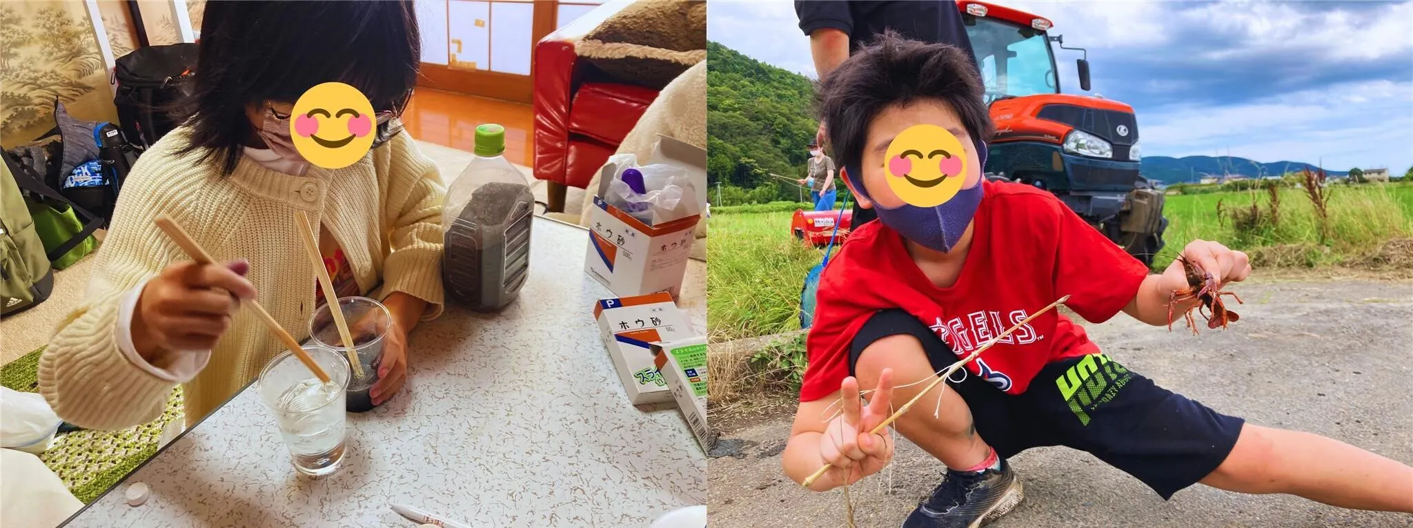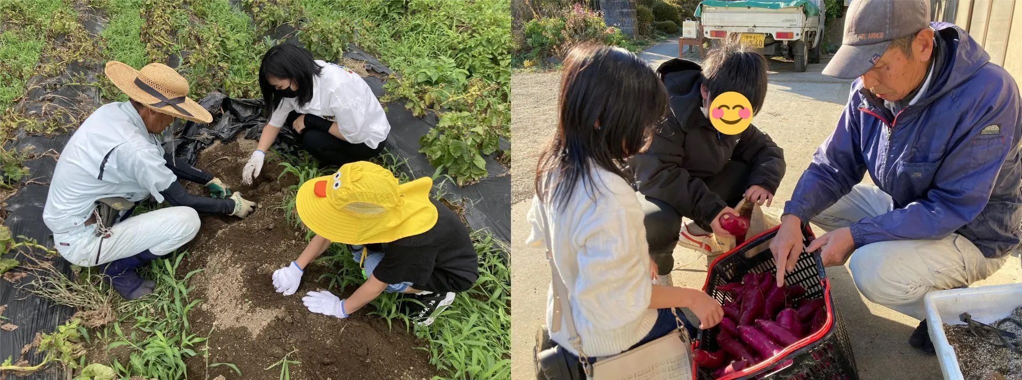 勝然さんの畑でジャガイモ植えから収穫までを体験。トラクターにも乗せてもらい大はしゃぎでした♪